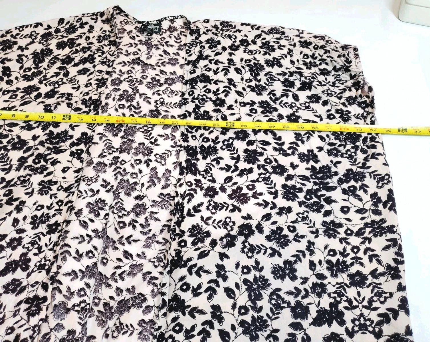 как выглядит ANGIE Womens Medium Top Kimono Cover-Up Bohemian Layering Black Printed Hippie фото