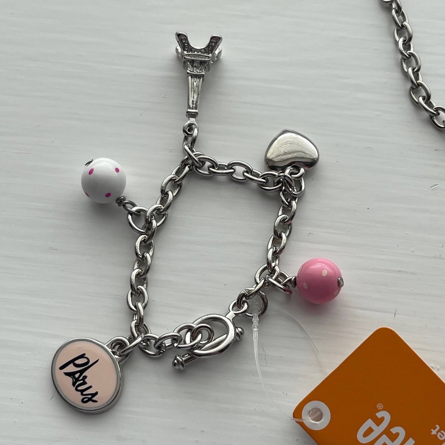 как выглядит Gymboree Girls Silver Paris Necklace and Bracelet Charm Set New фото