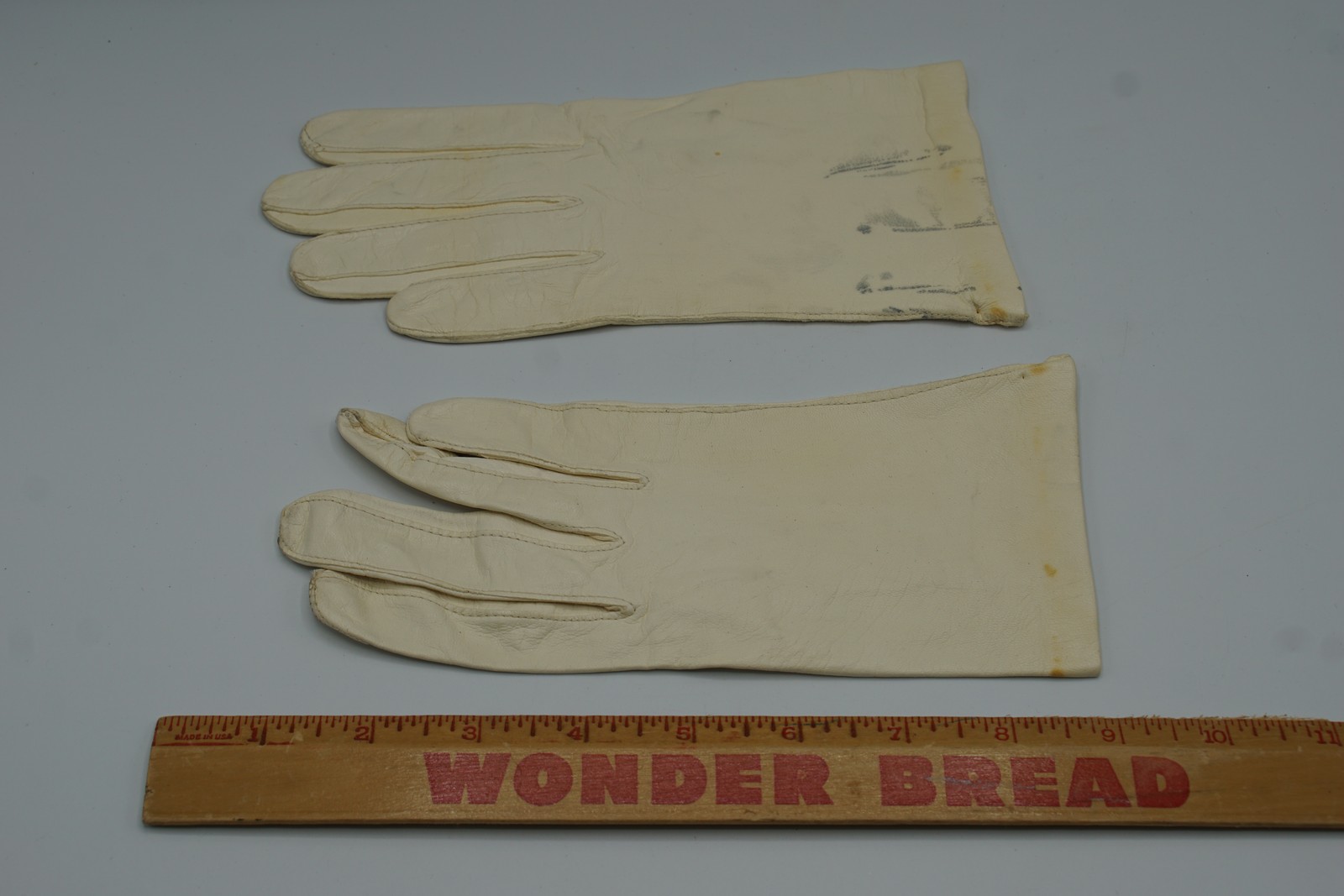 Vintage Ivory Kidskin Leather Gloves Size 6.5 Washable Mid-Length Cream