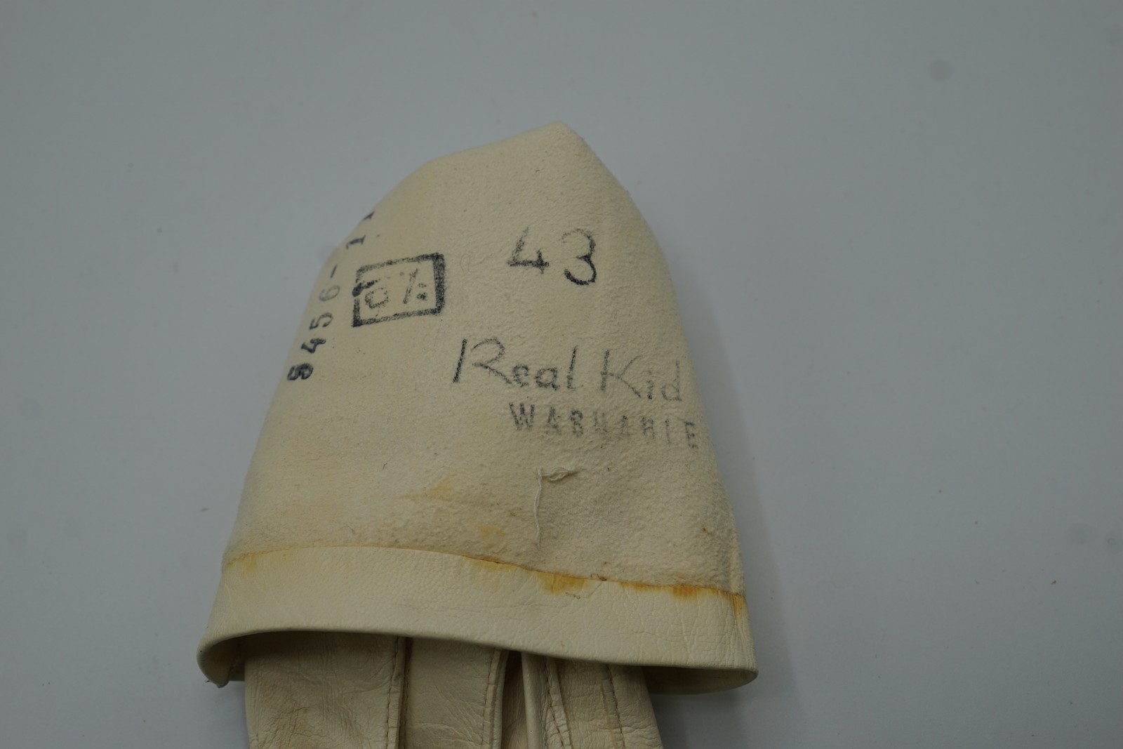 как выглядит Vintage Ivory Kidskin Leather Gloves Size 6.5 Washable Mid-Length Cream фото