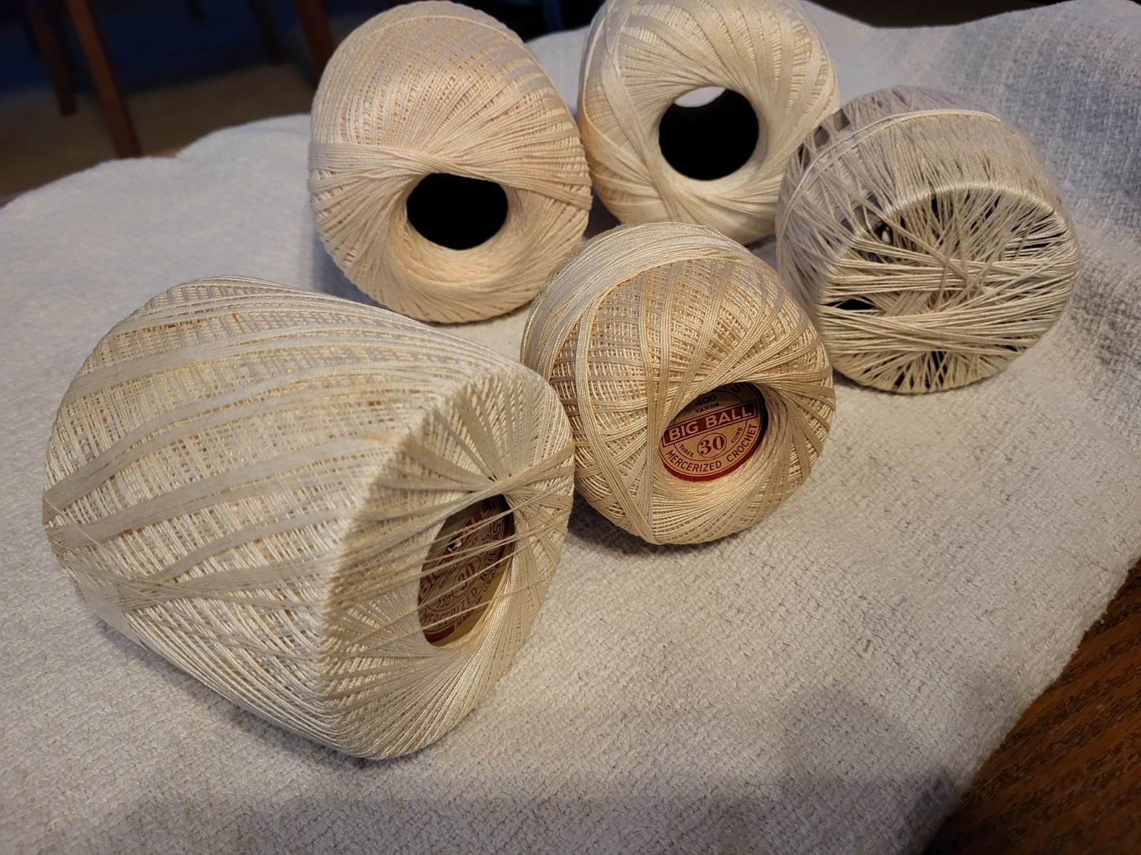 Lot of 5 Assorted Crochet Thread in Shades Cream and White Colors Partial