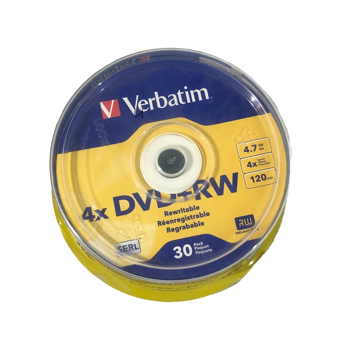 Sealed 30 Verbatim Blank 4X DVD RW Logo Branded 4.7GB Rewritable DVD Disc