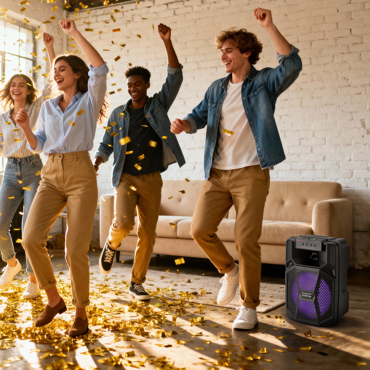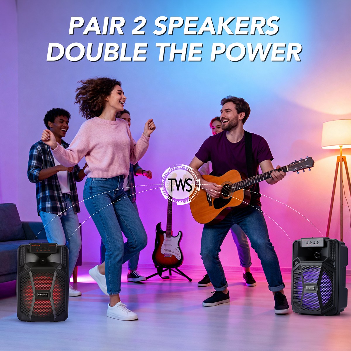 Functions: USB Flash Drive, TF, AUX, FM, BT, TWS
