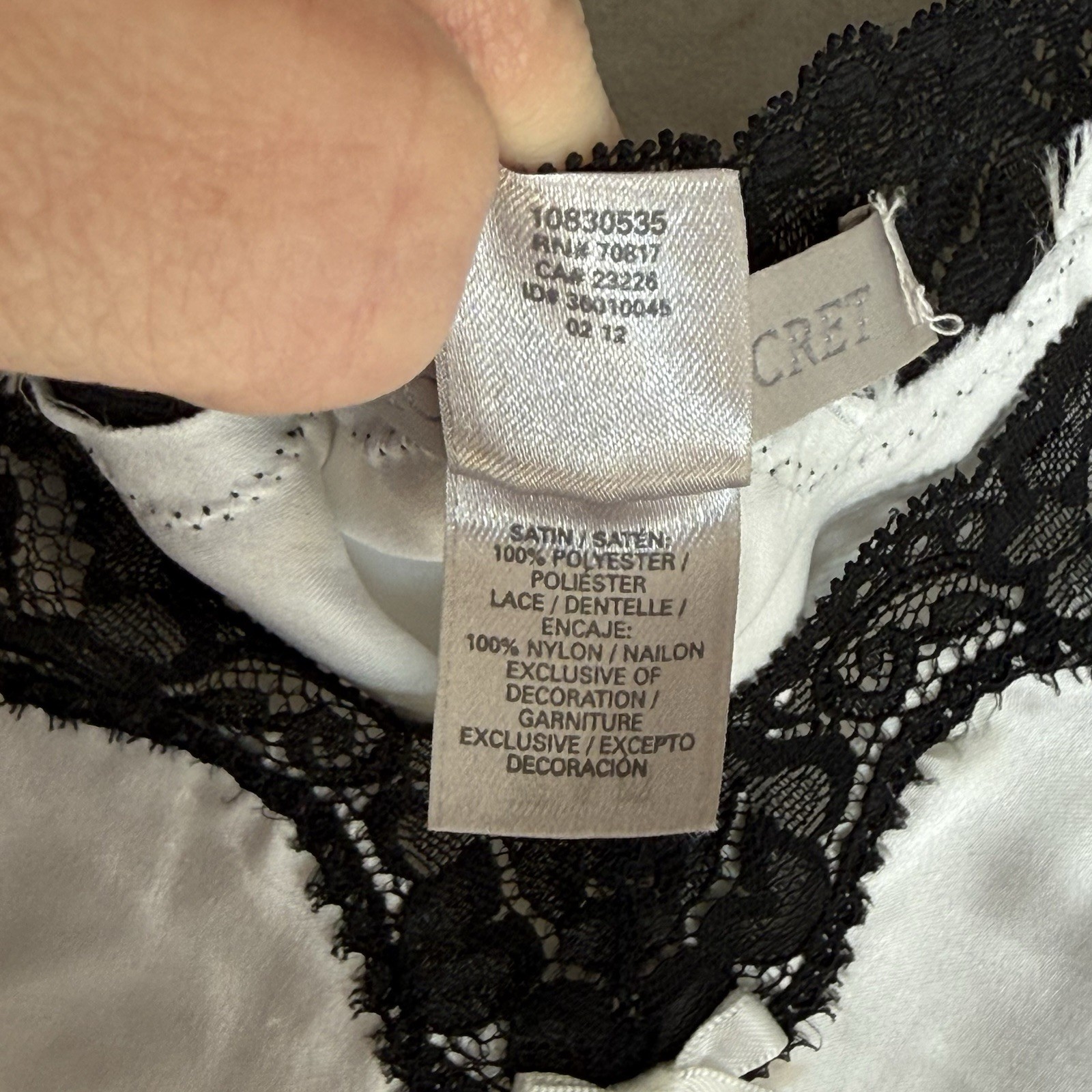 как выглядит Victorias Secret Lingerie White Satin Slip Black Lace Trim Medium Nightgown фото