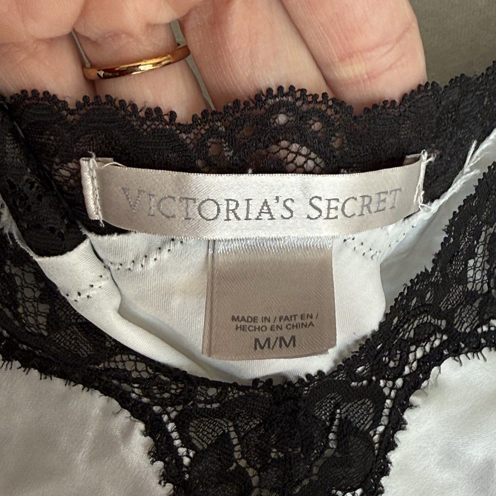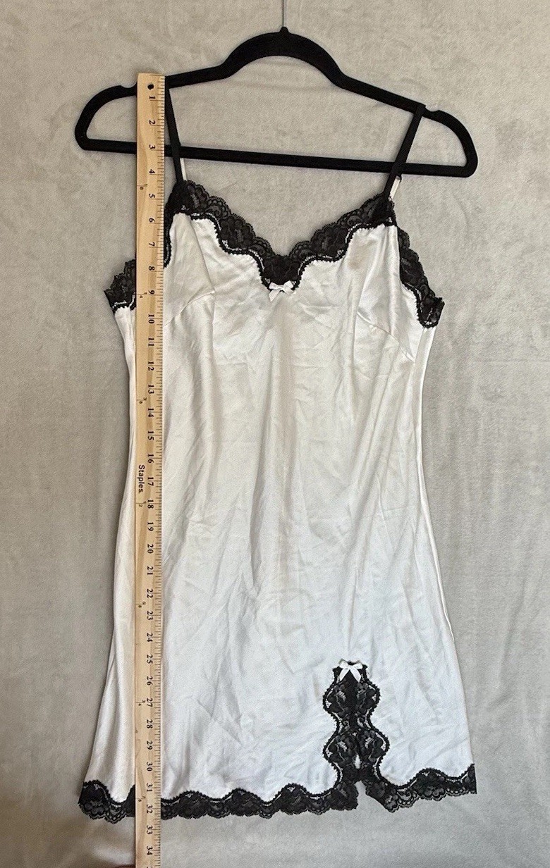 Victorias Secret Lingerie White Satin Slip Black Lace Trim Medium Nightgown