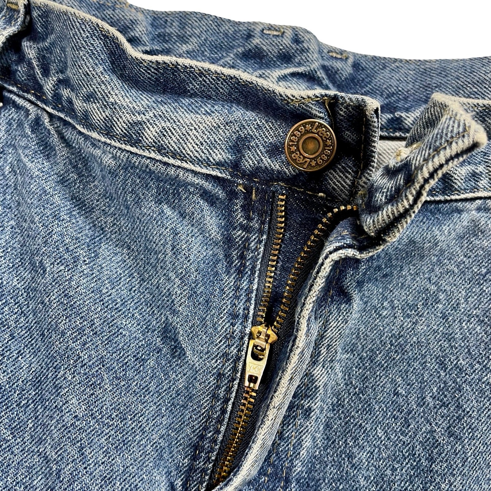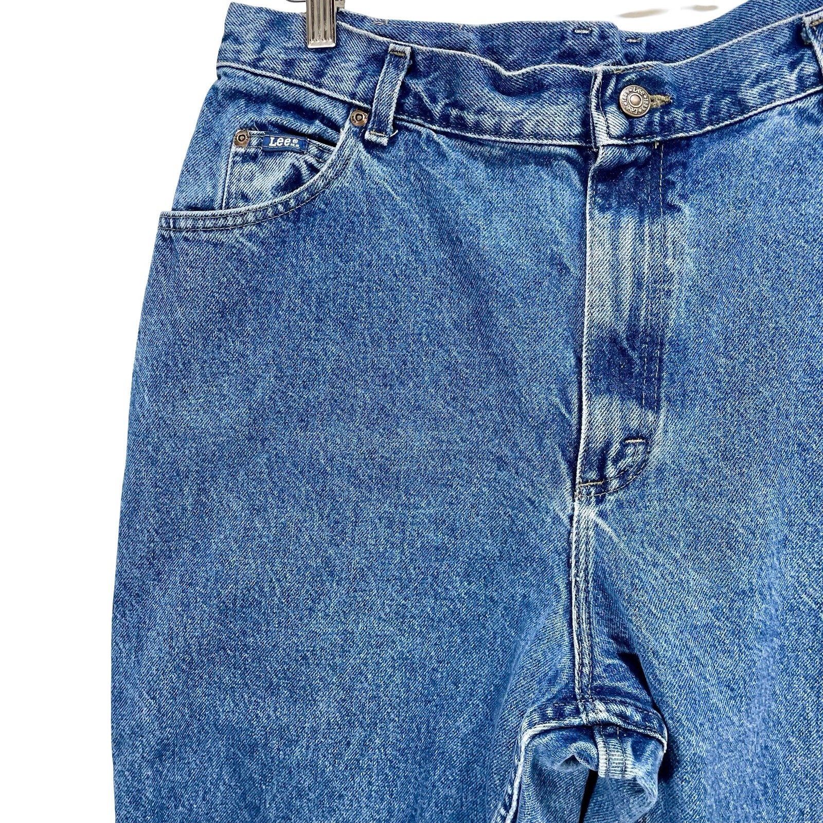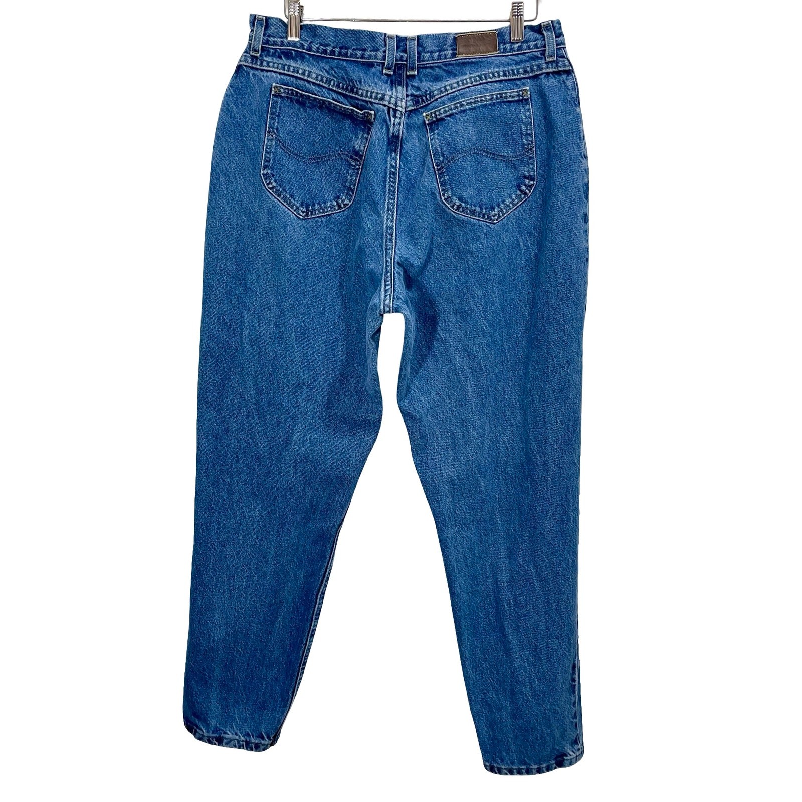 как выглядит Vintage 90s Lee Mom Jeans High Waist Tapered Leg 35" Waist Medium Wash Denim фото