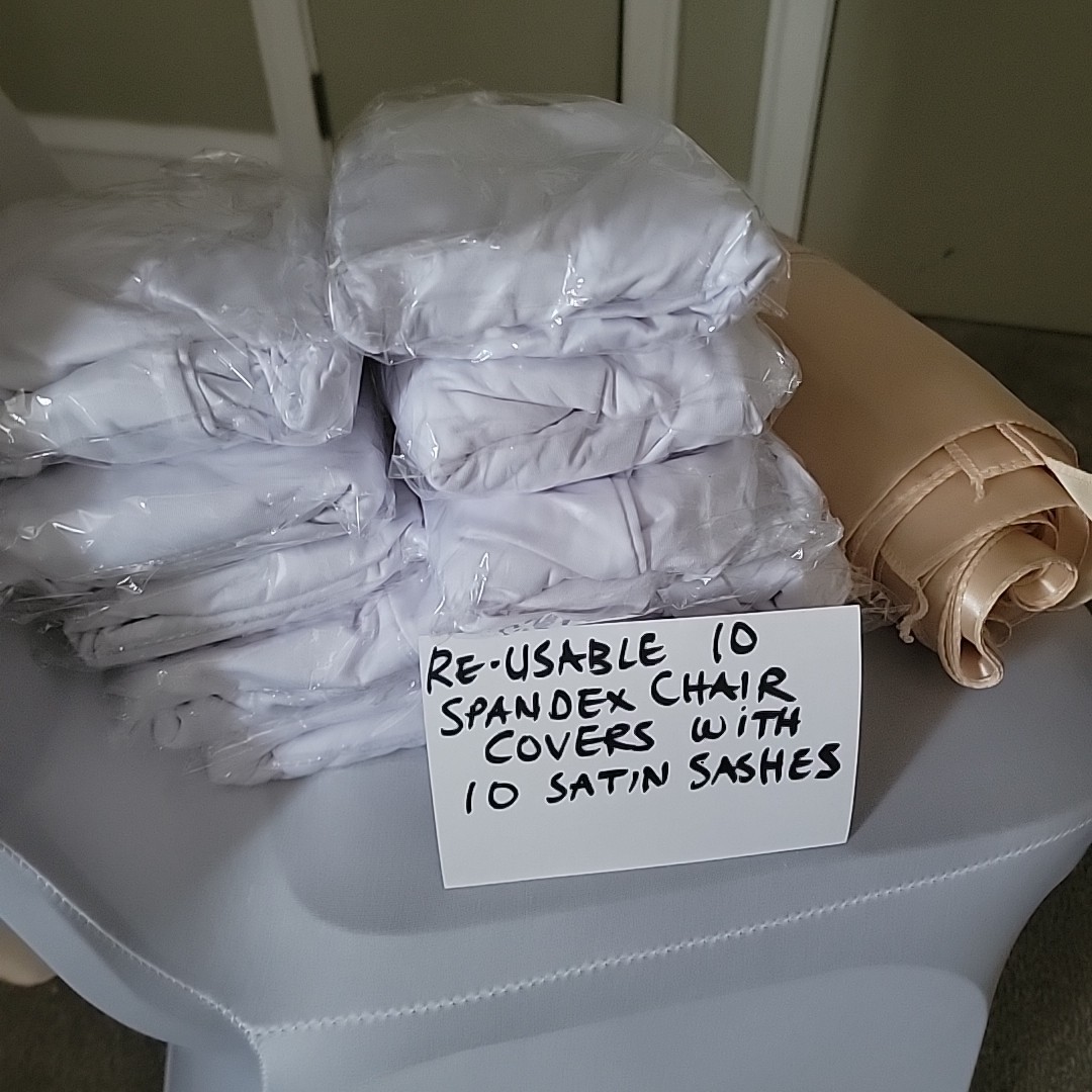 20 Pcs White Spandex Stretch Chair Cover Satin Sashes- Wedding Party Banquet