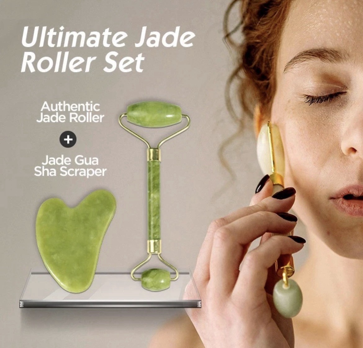 Anti Aging Jade Roller Therapy 100 Natural Double Neck Healing Massager De-puff