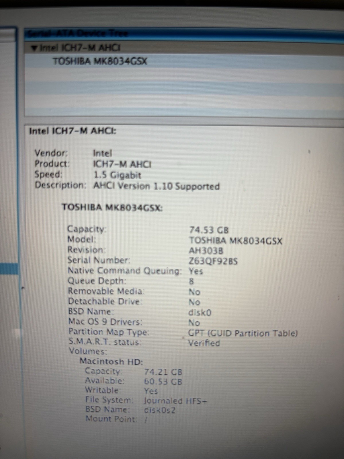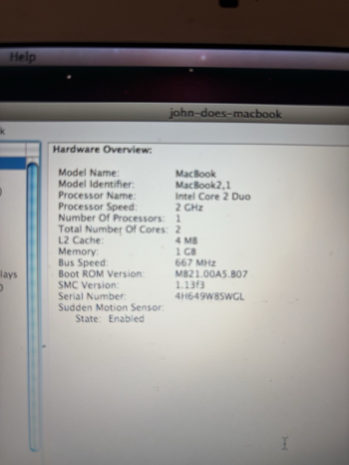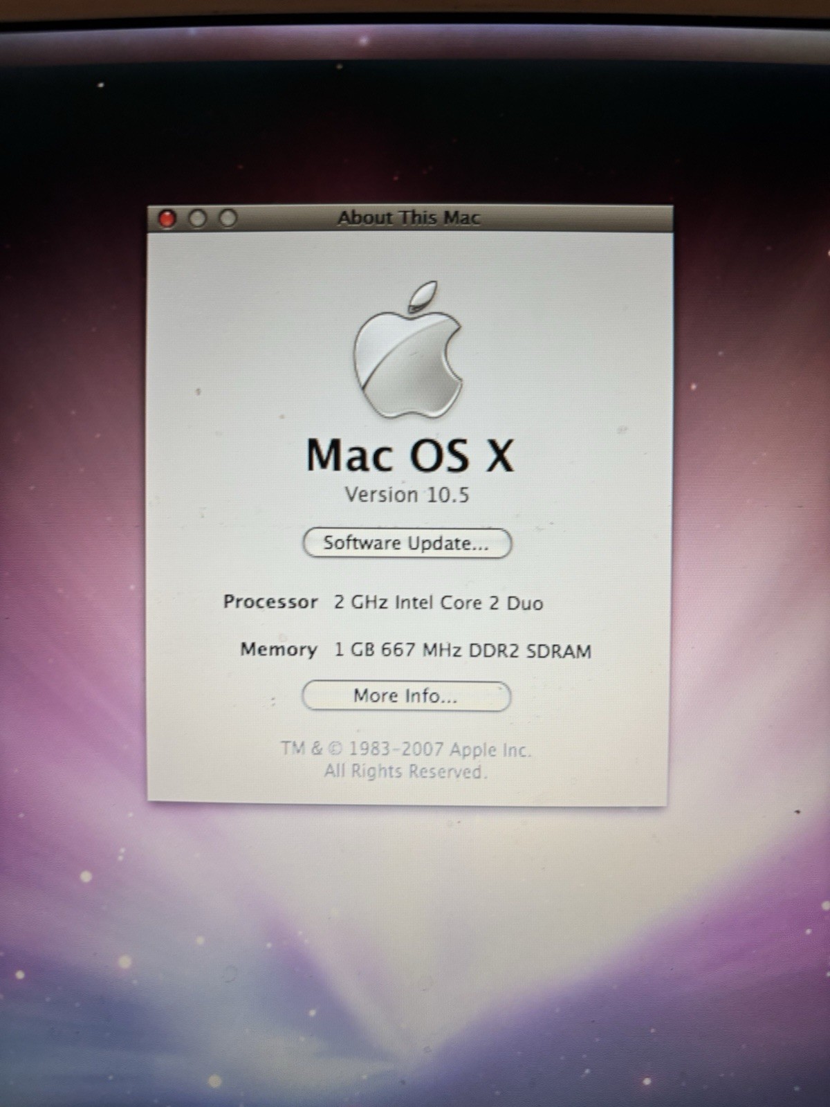 Apple MacBook Intel Core 2 Duo 2GHz / 1GB RAM / 80 GB HD / DVD-RW - A1181 - 2007