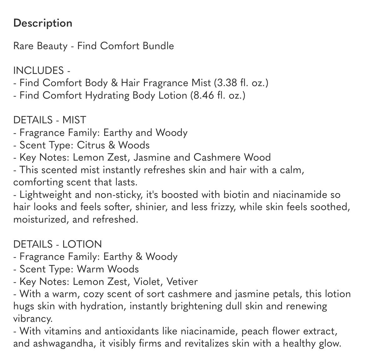 Rare Beauty Find Comfort Hydrating Body Lotion 3.2oz Hair Body Mist 1.69oz