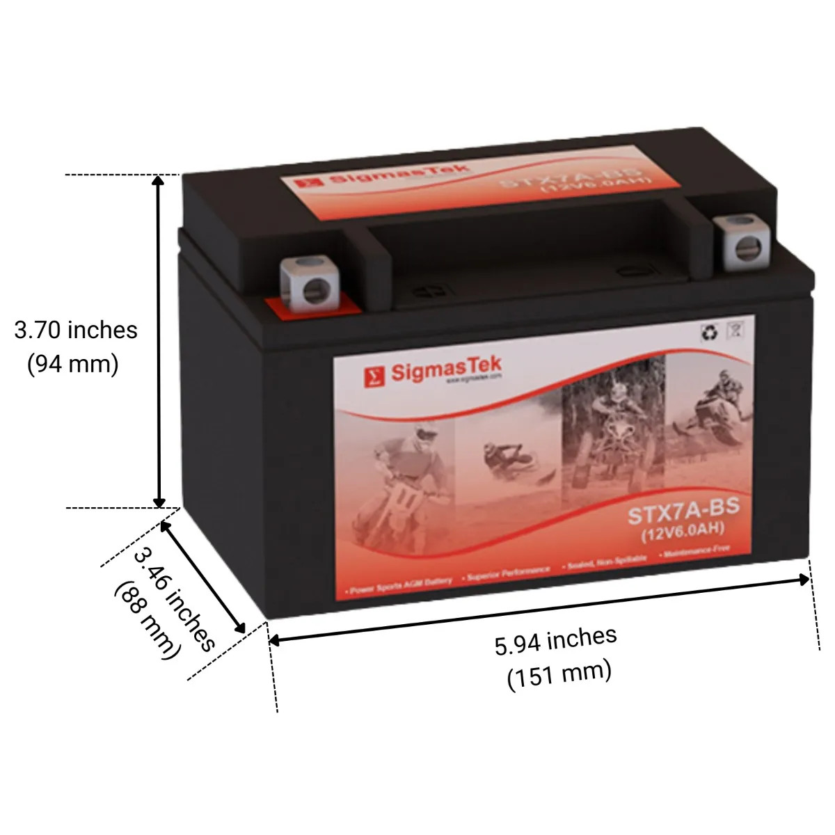 SigmasTek STX7A-BS 12V 7Ah NB 105CCA SLA AGM Powersports Rechargeable Battery