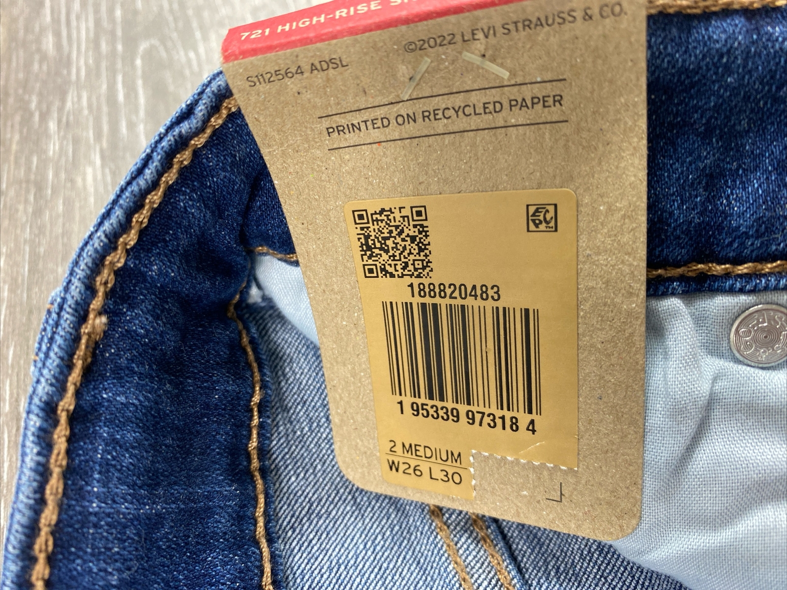 NWT Levi's 721 Womens 26 -High Rise Skinny Jeans Blue Denim Pants NEW WITH TAGS