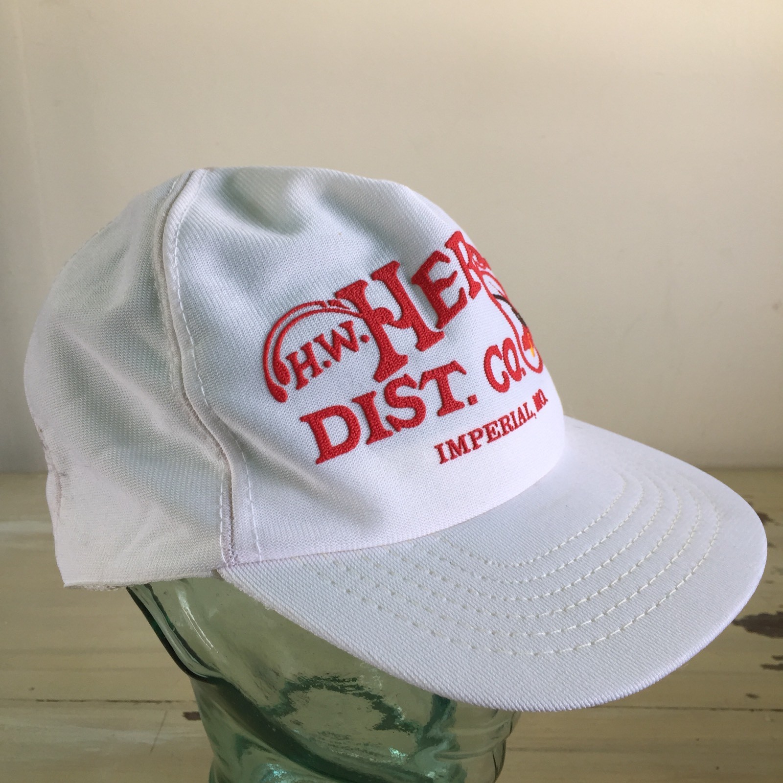 ANHEUSER BUSCH HW HERRELL DISTRIBUTORS Vtg White Mesh Trucker Budweiser Work Hat