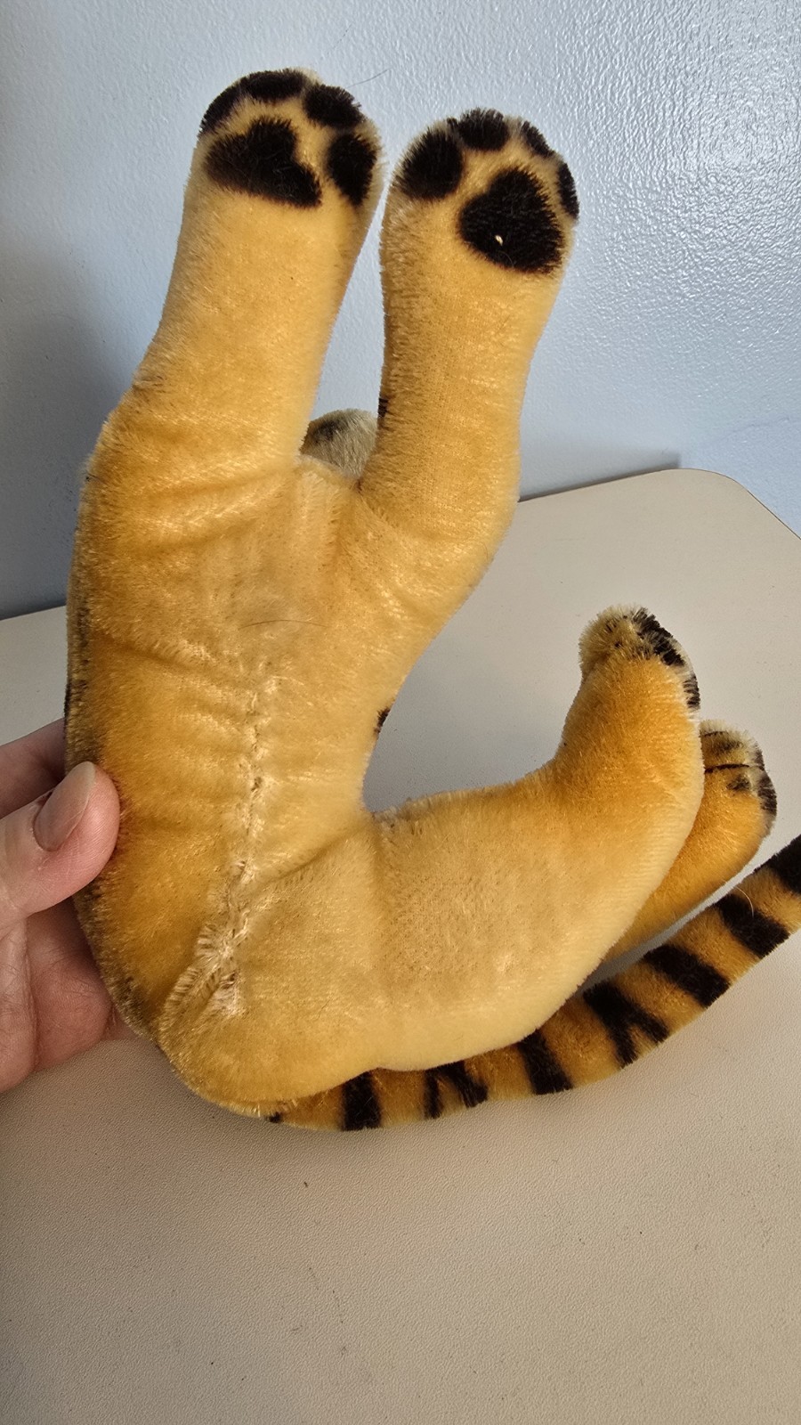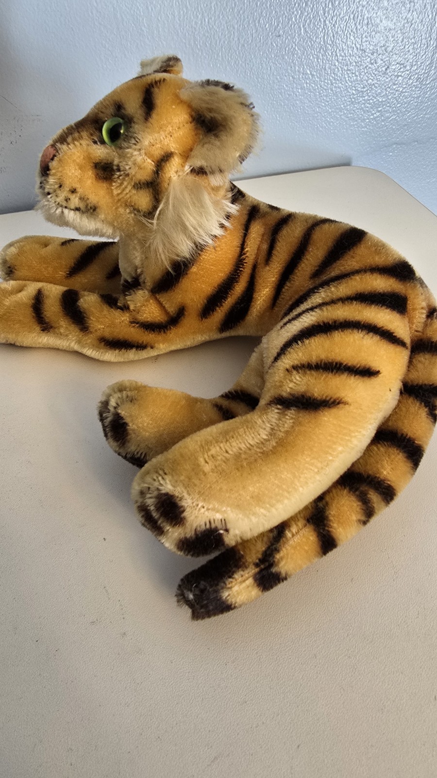 как выглядит Vintage Steiff Tiger Laying Down Green Eyes фото