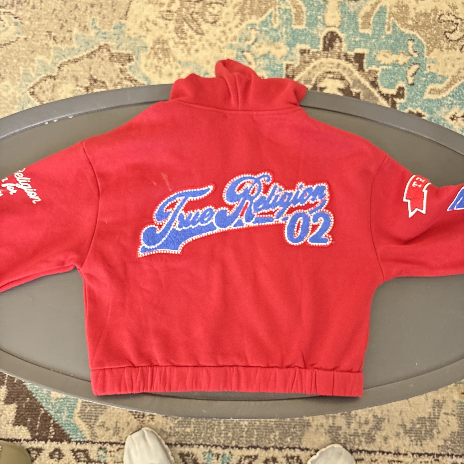 как выглядит True Religion Crystal Patch Zip Varsity Jacket Child Size Large фото