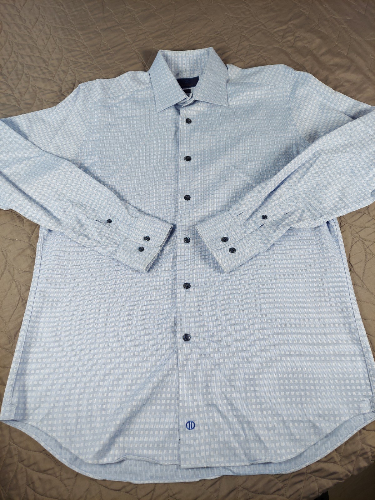 David Donahue Dress Shirt Mens 17 Trim Blue Check Modern Formal Bussinesswear