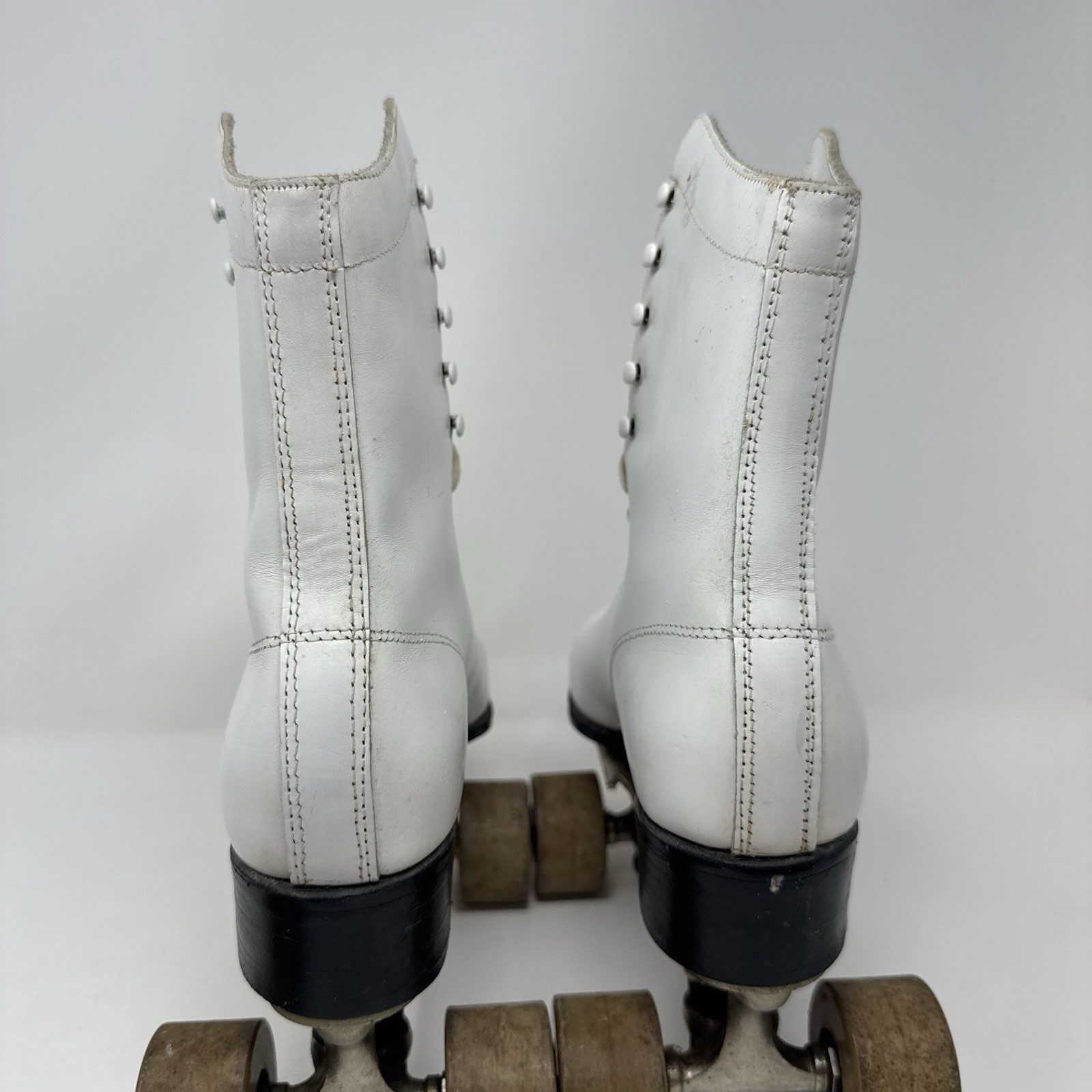 VTG Chicago 5 Leather Roller Skates Quads White 76 Women s 8 USA Derby