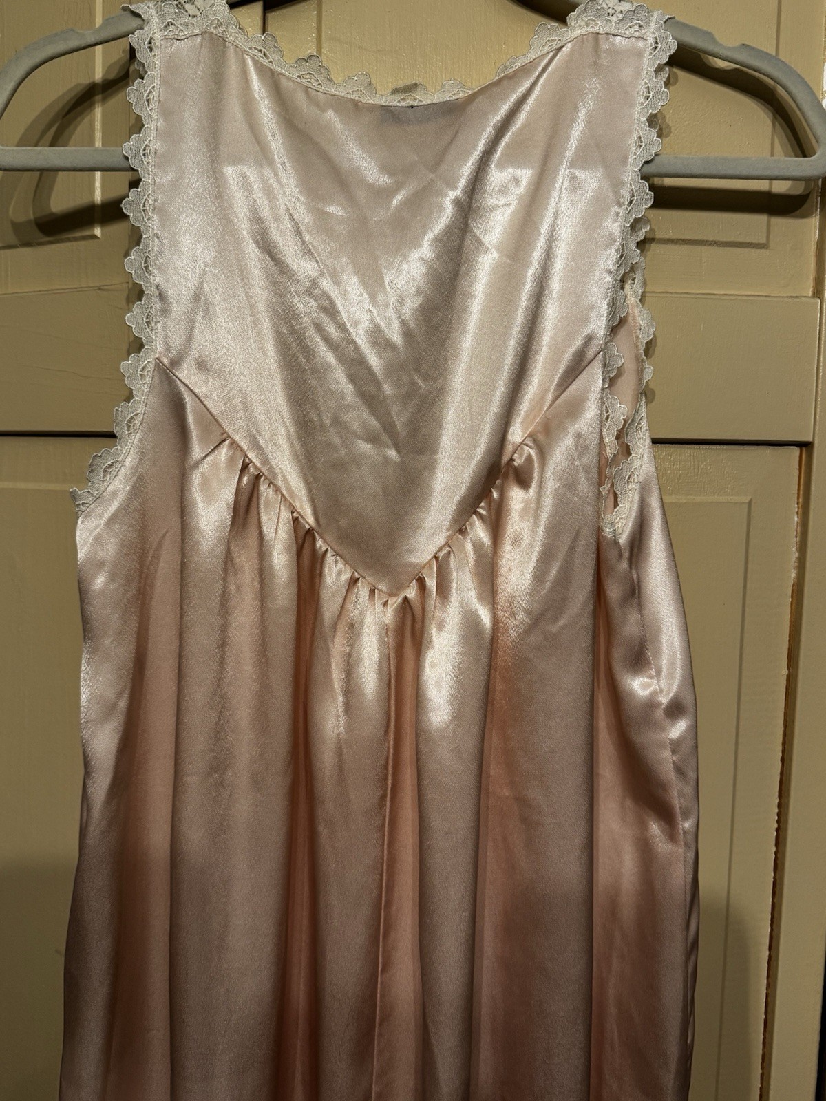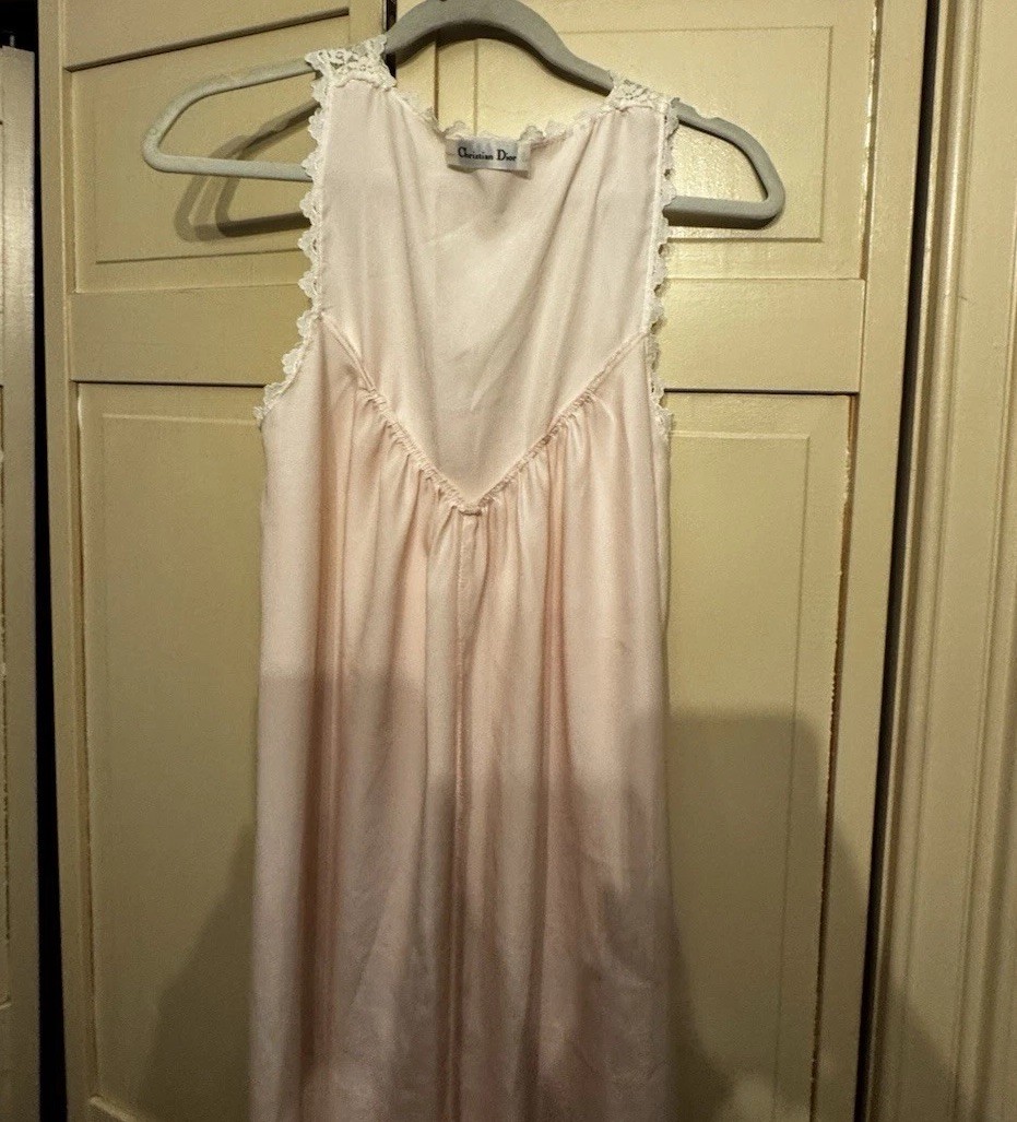 как выглядит Vintage Christian Dior Pale PINK SILP Nightgown Floral LACE Chemise SM фото