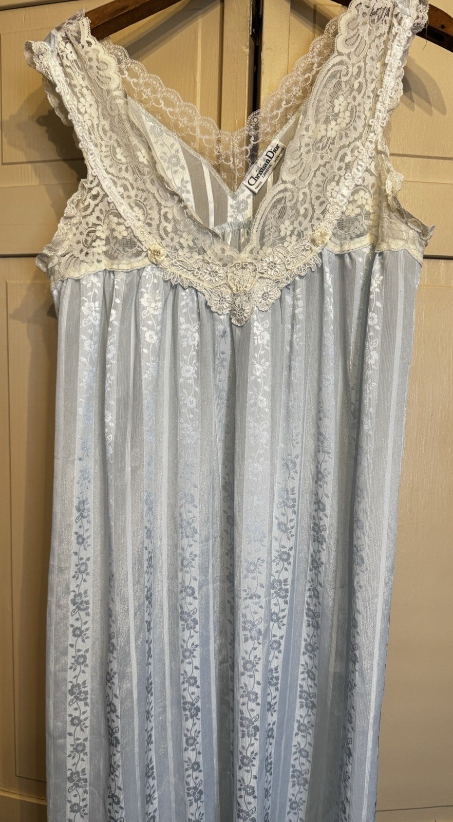 Vintage Christian Dior Pale PINK SILP Nightgown Floral LACE Chemise SM