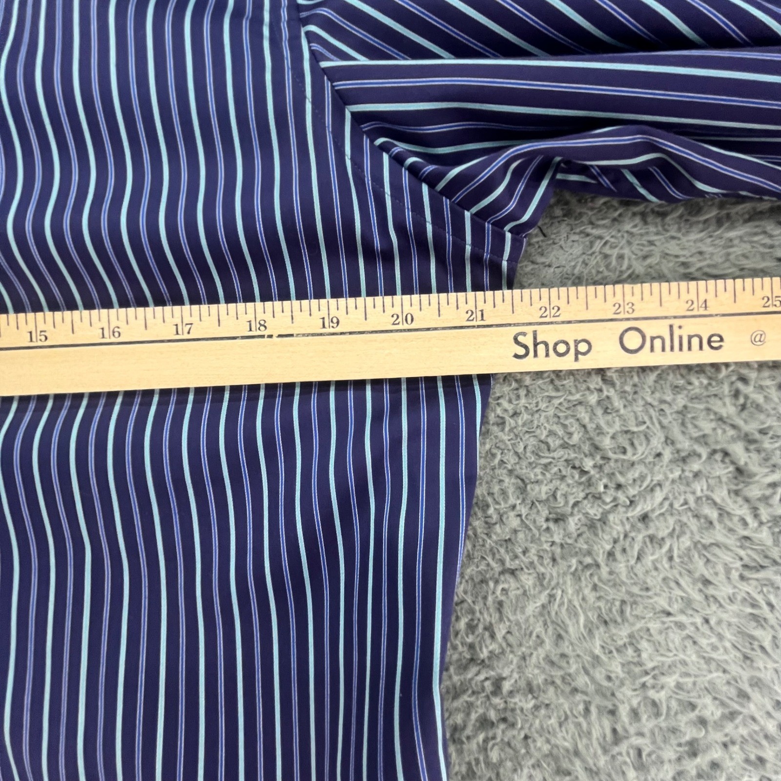 Eton Contemporary Navy Blue Stripe Dress Shirt Mens 40 15 3/4 Modern Fit