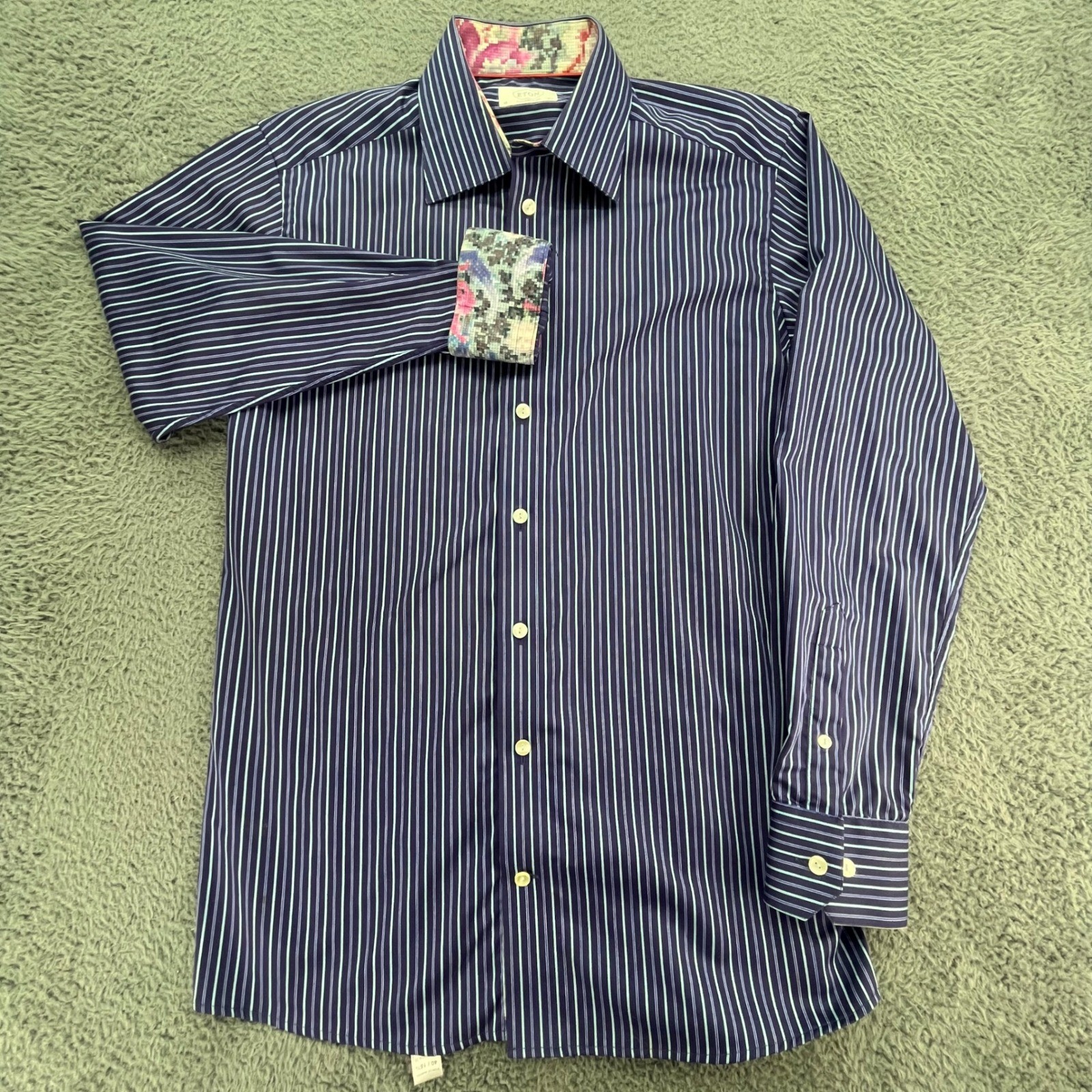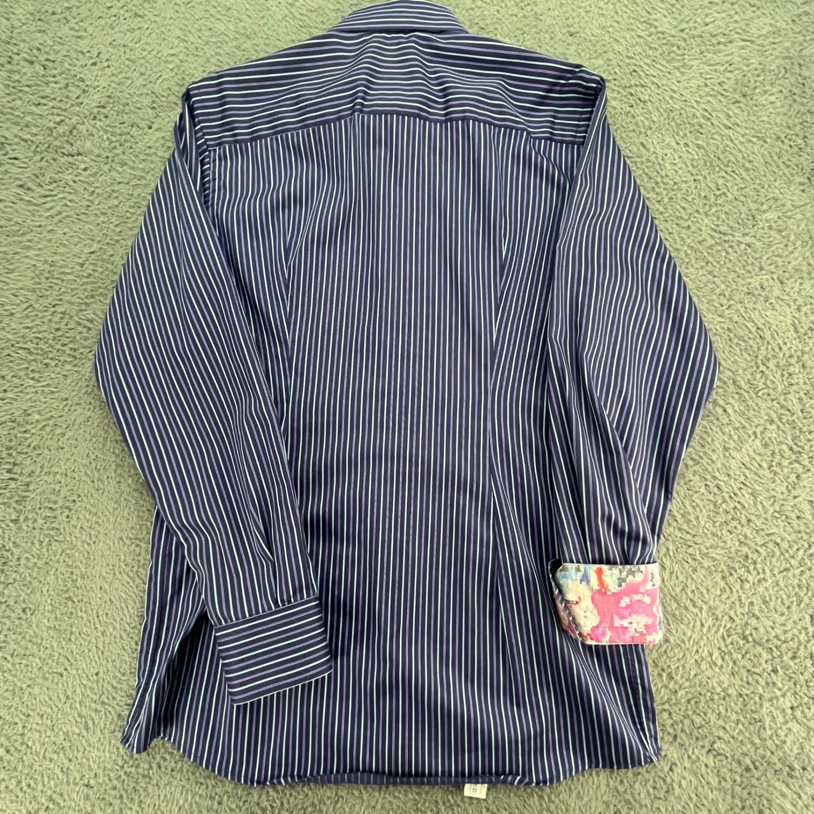 как выглядит Eton Contemporary Navy Blue Stripe Dress Shirt Mens 40 15 3/4 Modern Fit фото
