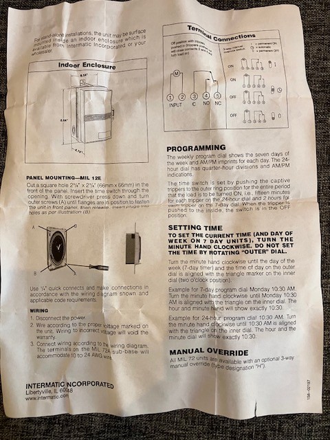 • Intermatic MIL72ASTUZH-24 24 Hour Time Switch 24VAC