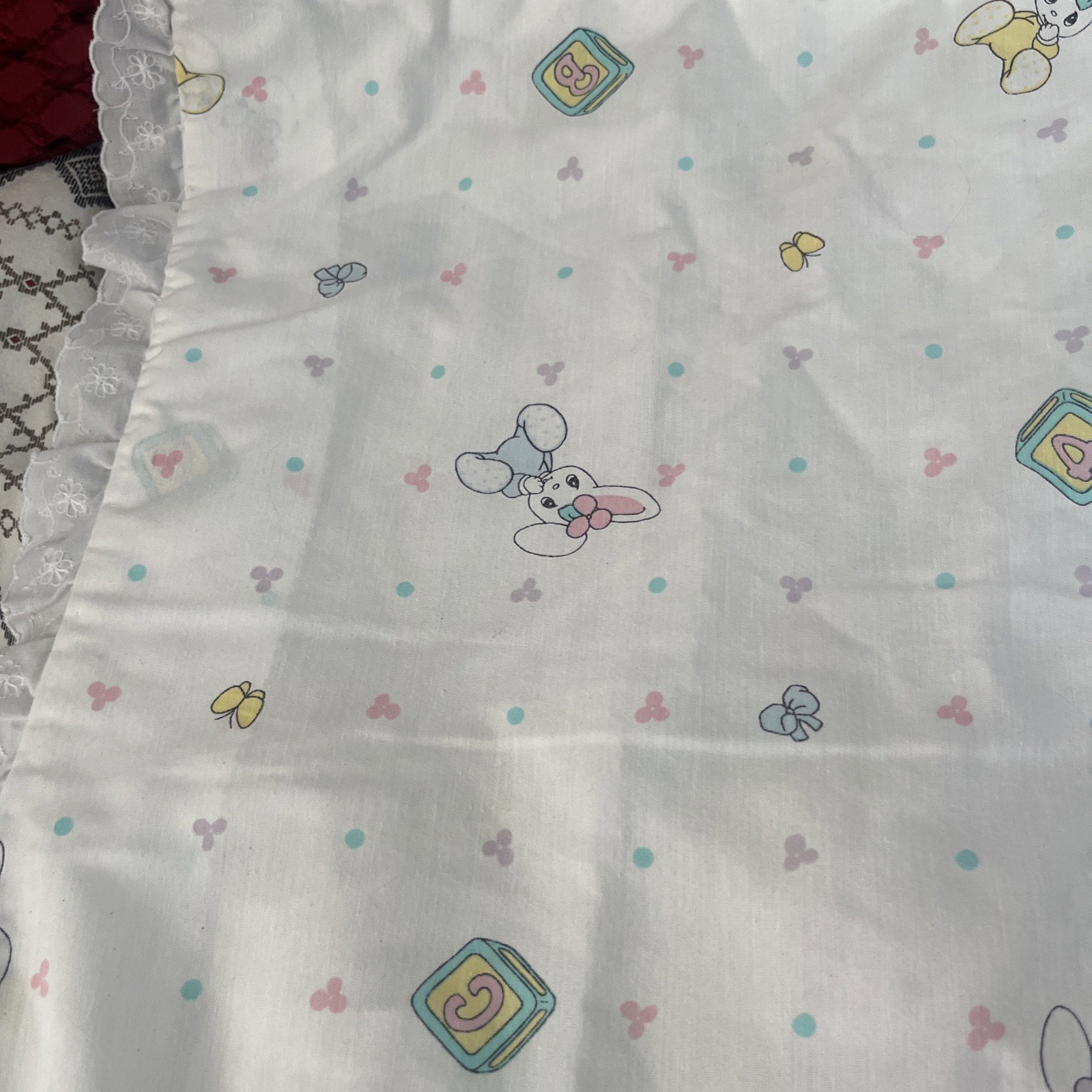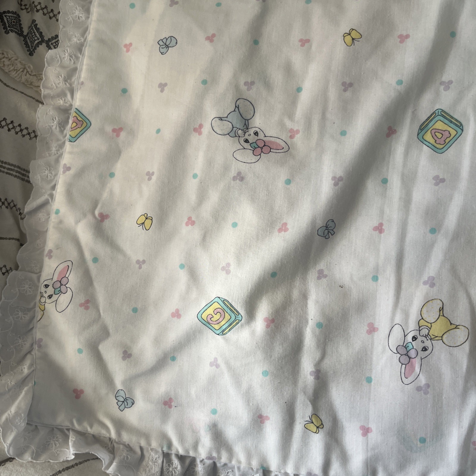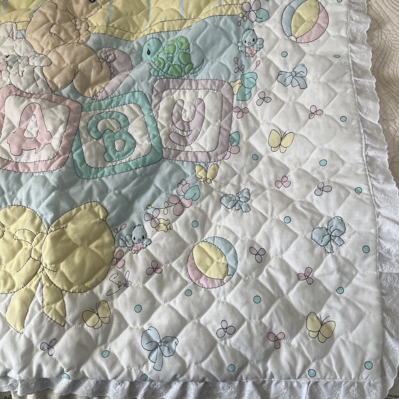 VTG Precious Moments Our Baby Lightweight Double Sided Ruffle Quilt Blanket