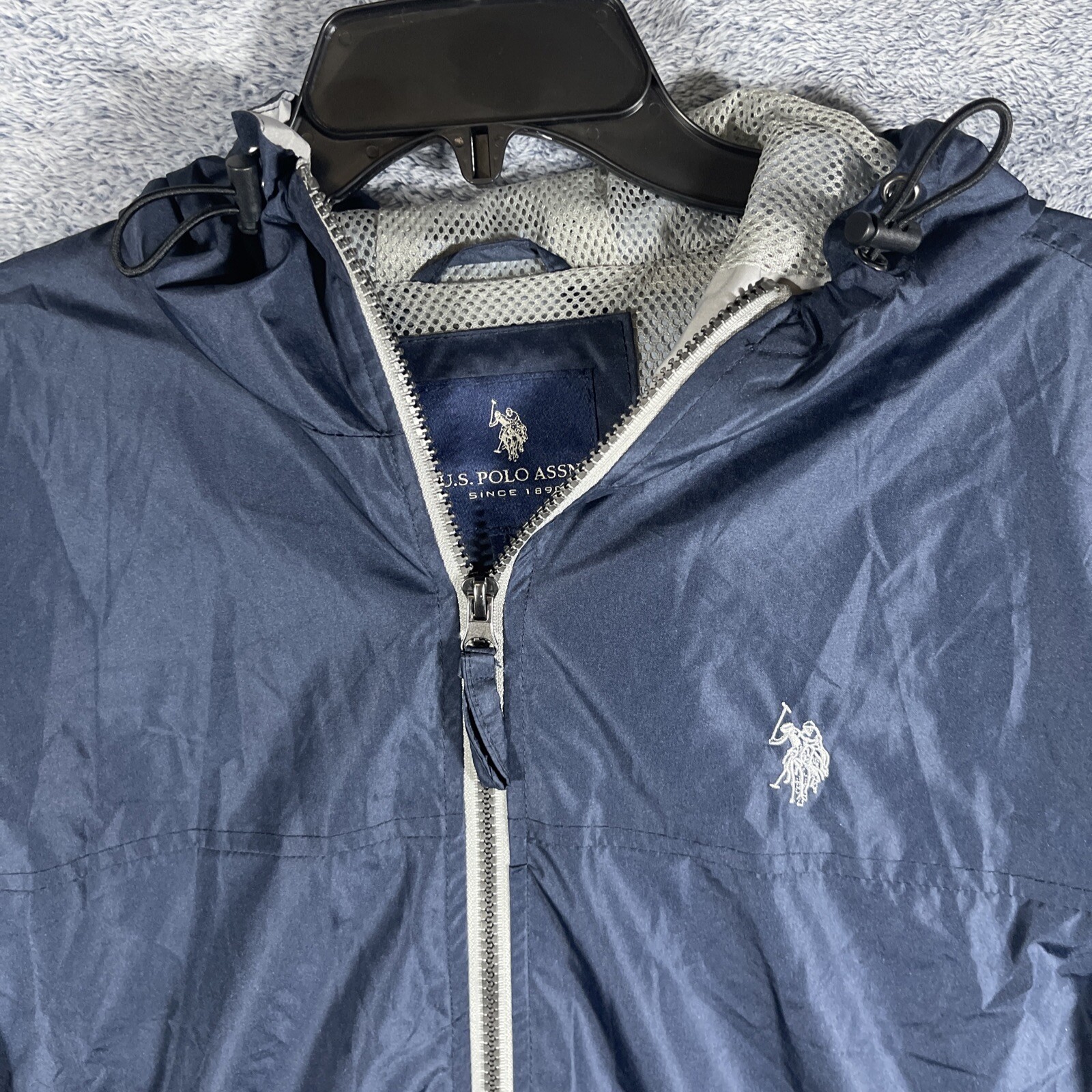 US Polo Assn Jacket Mens Medium Blue Windbreaker Hooded Long Sleeve Full Zip