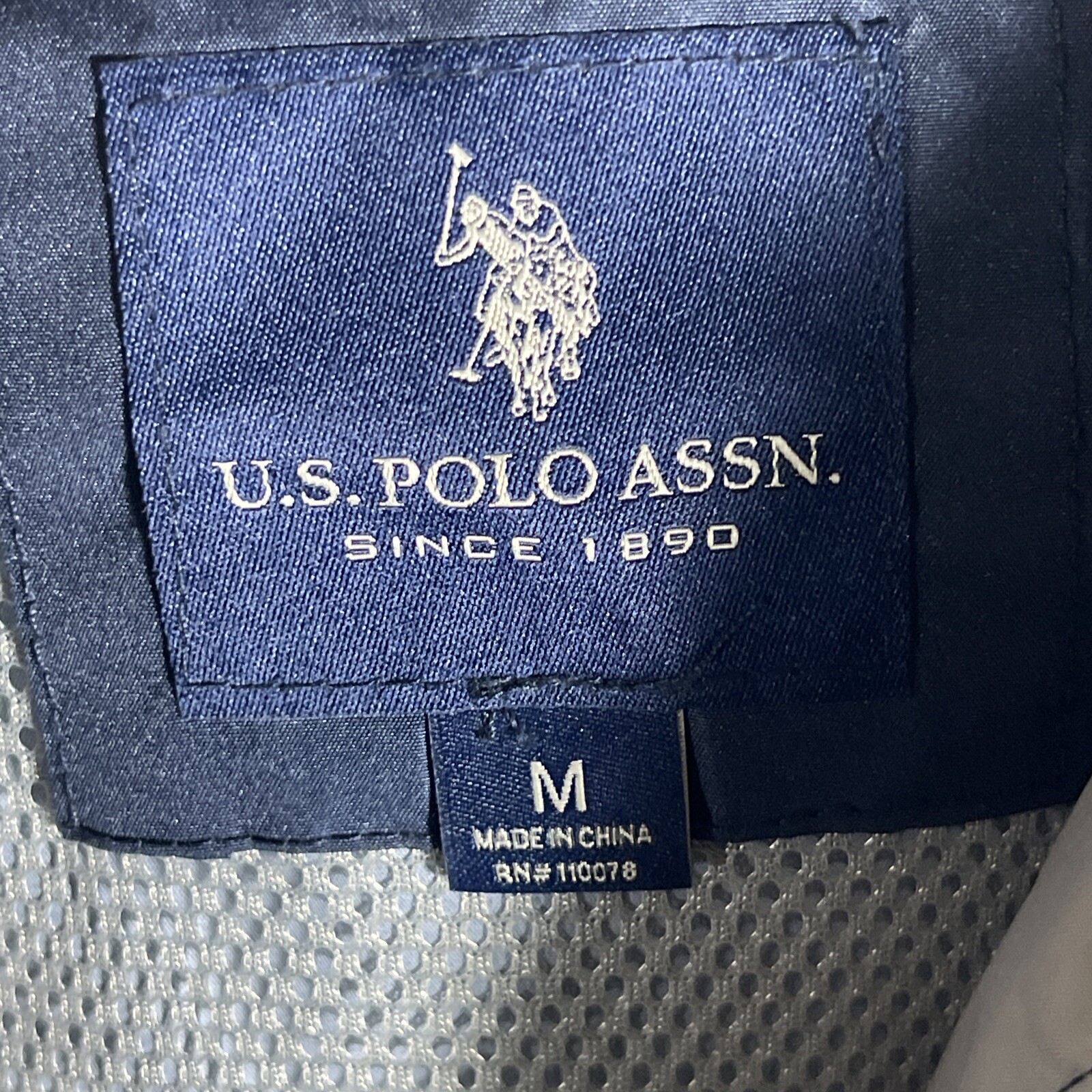 как выглядит US Polo Assn Jacket Mens Medium Blue Windbreaker Hooded Long Sleeve Full Zip фото