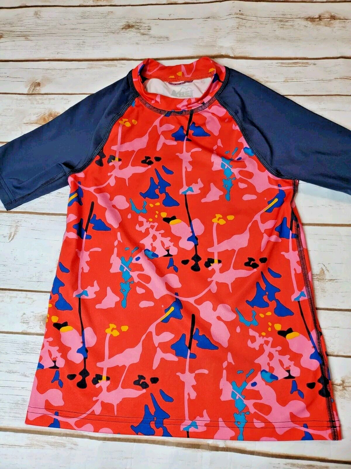 REI Co-op Girls Rash Guard Swim Shirt Kids 10-12 Top Red Colorful
