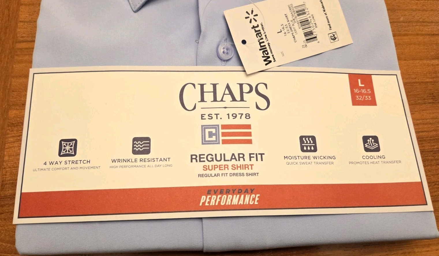 как выглядит Chaps Mens LARGE 16-16.5 32/33 Long Sleeve Performance Dress Shirt BLUE 10726 фото
