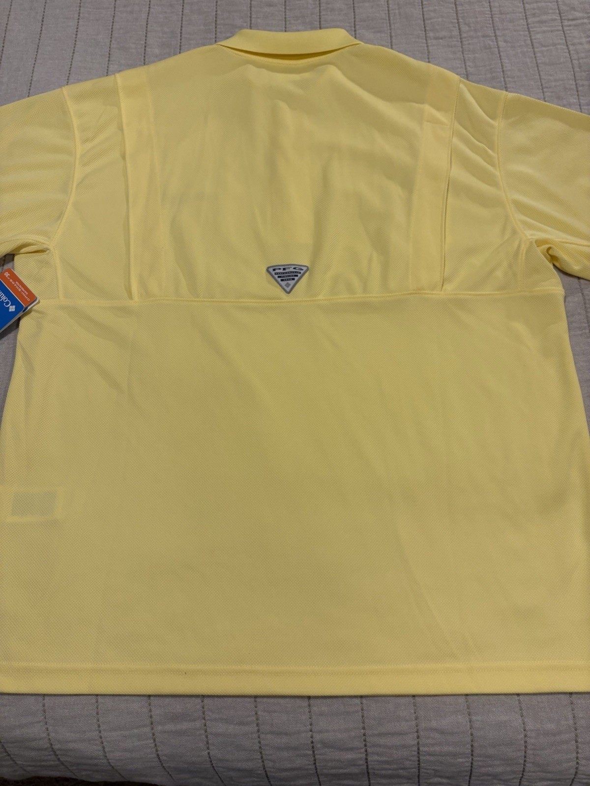 как выглядит Columbia PFG Mens Short Sleeve Polo Shirt Yellow Large Omni-Wick UPF 30 NWT фото