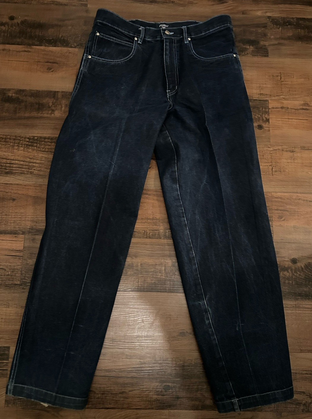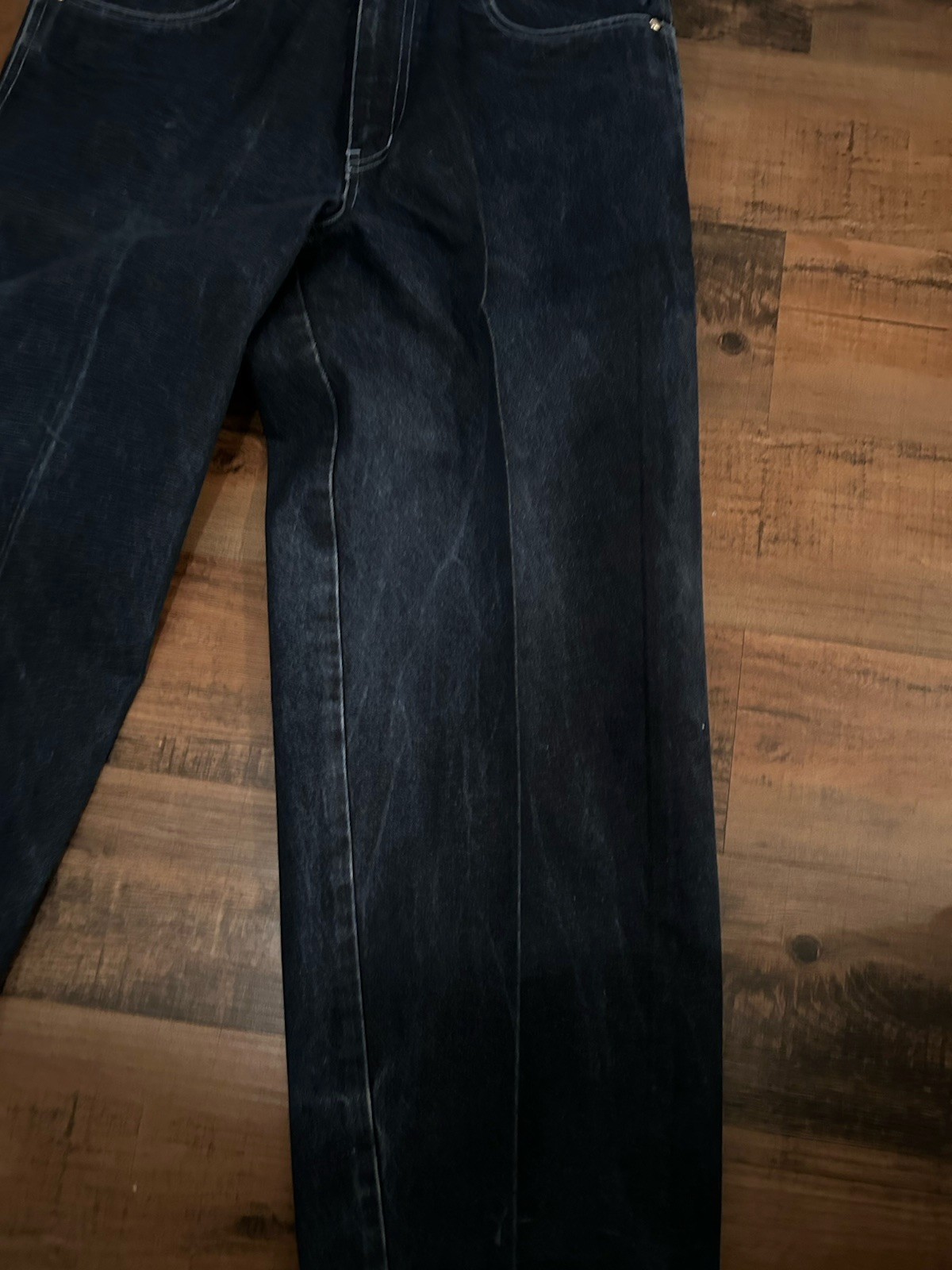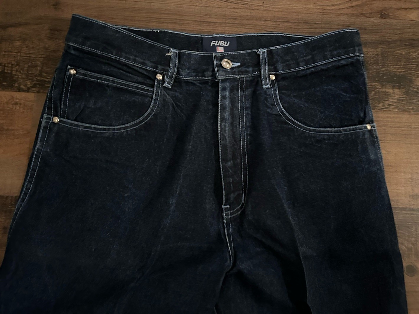 как выглядит Vintage Y2K FUBU Baggy Wide Leg Dark Wash Blue Denim Jeans Size 36x34 Hip Hop фото