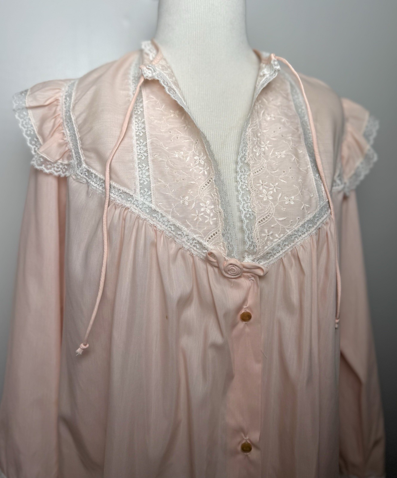 как выглядит Vtg NWT Barbizon Nightgown L Pink Lace Ruffle Button Front Cottagecore Sleepwear фото