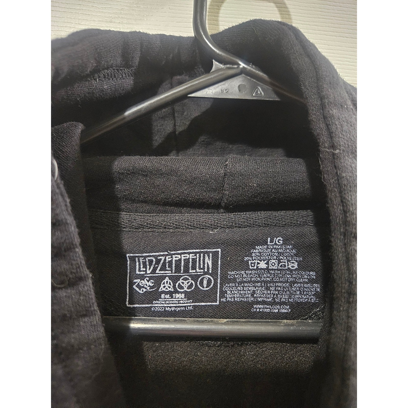 Led Zeppelin Black Graphic Hoodie Zoso Symbols Rock Band Sweatshirt Large