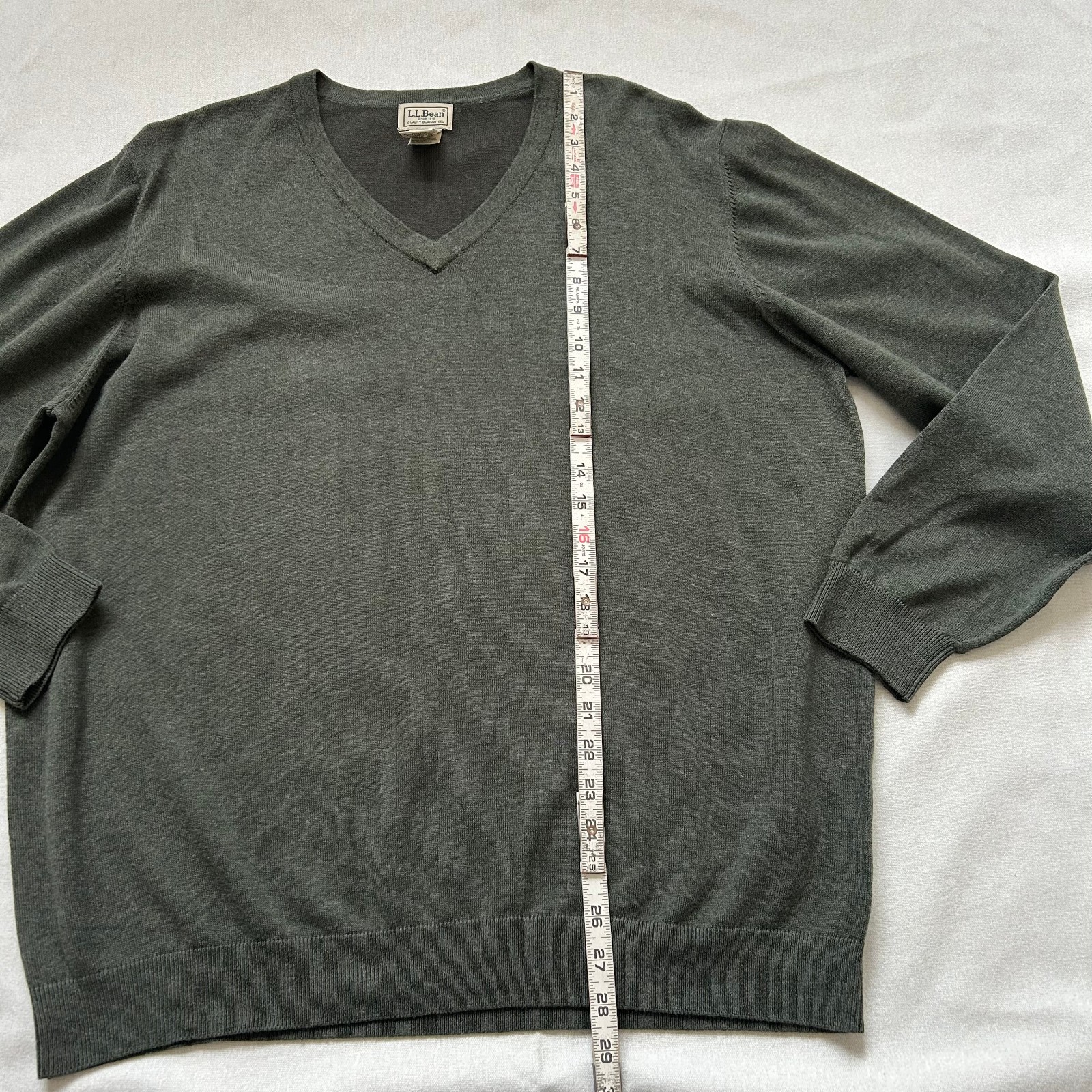 как выглядит LL Bean Sweater Mens XL Green Cotton Blend Knit Long Sleeve V-Neck Pullover фото