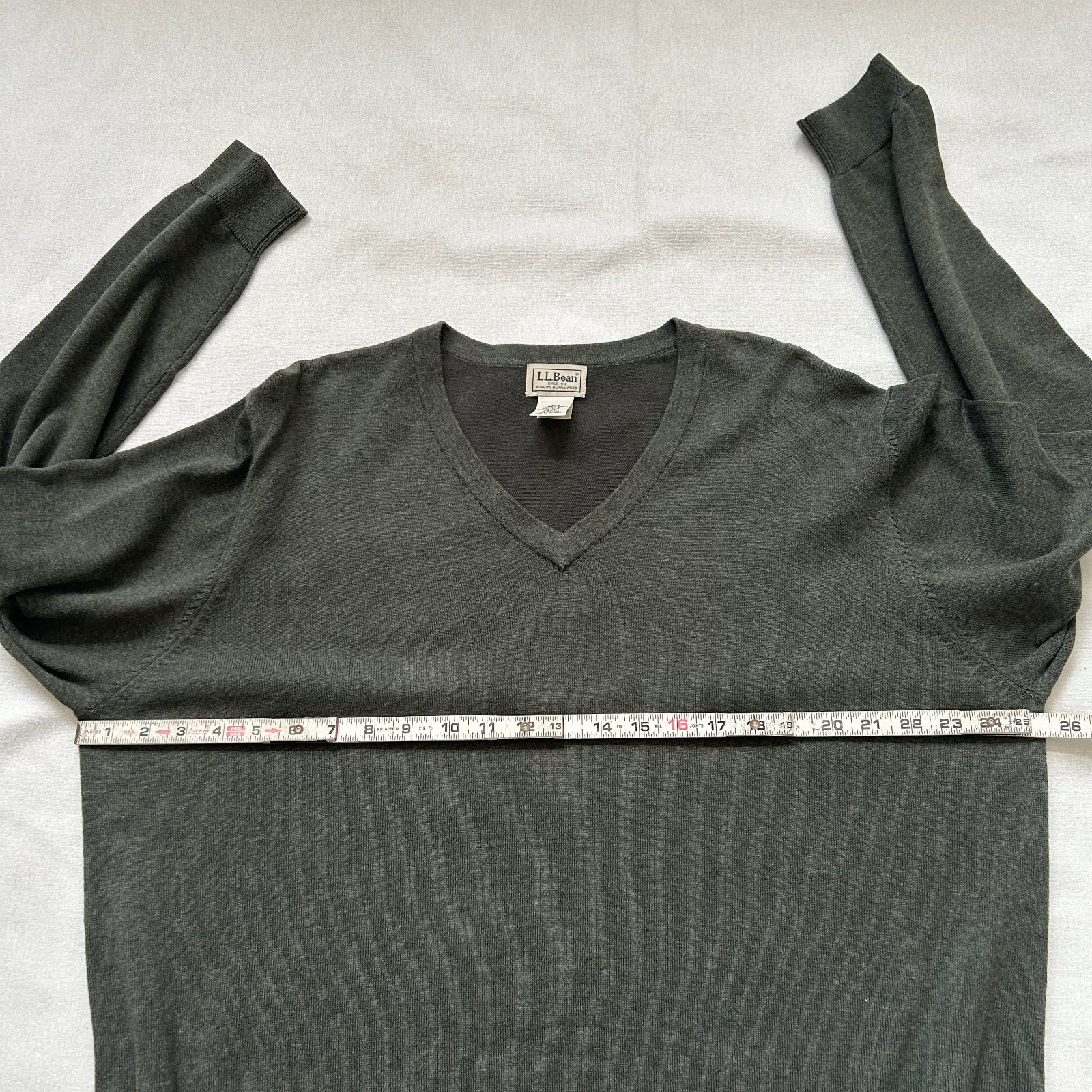 LL Bean Sweater Mens XL Green Cotton Blend Knit Long Sleeve V-Neck Pullover