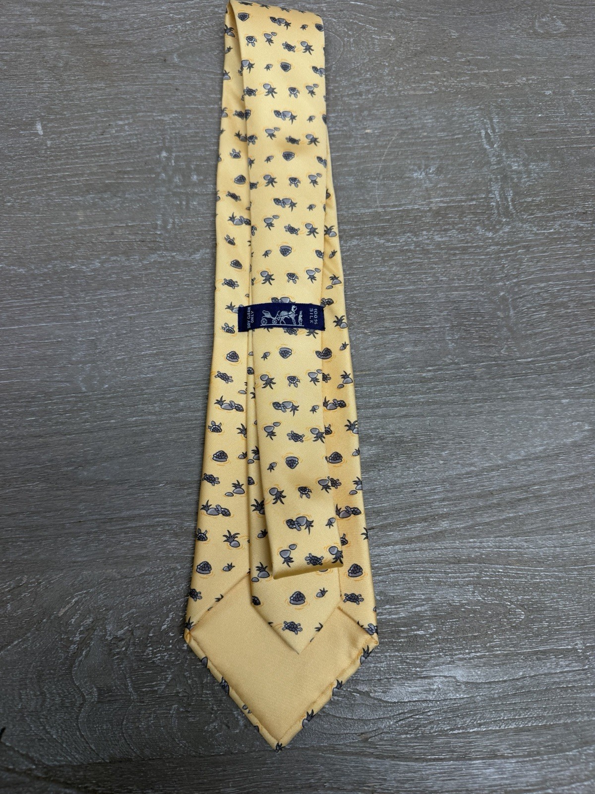 как выглядит Hermes Paris Silk Tie Yellow Animal Print Tortoise Pattern Made in France фото
