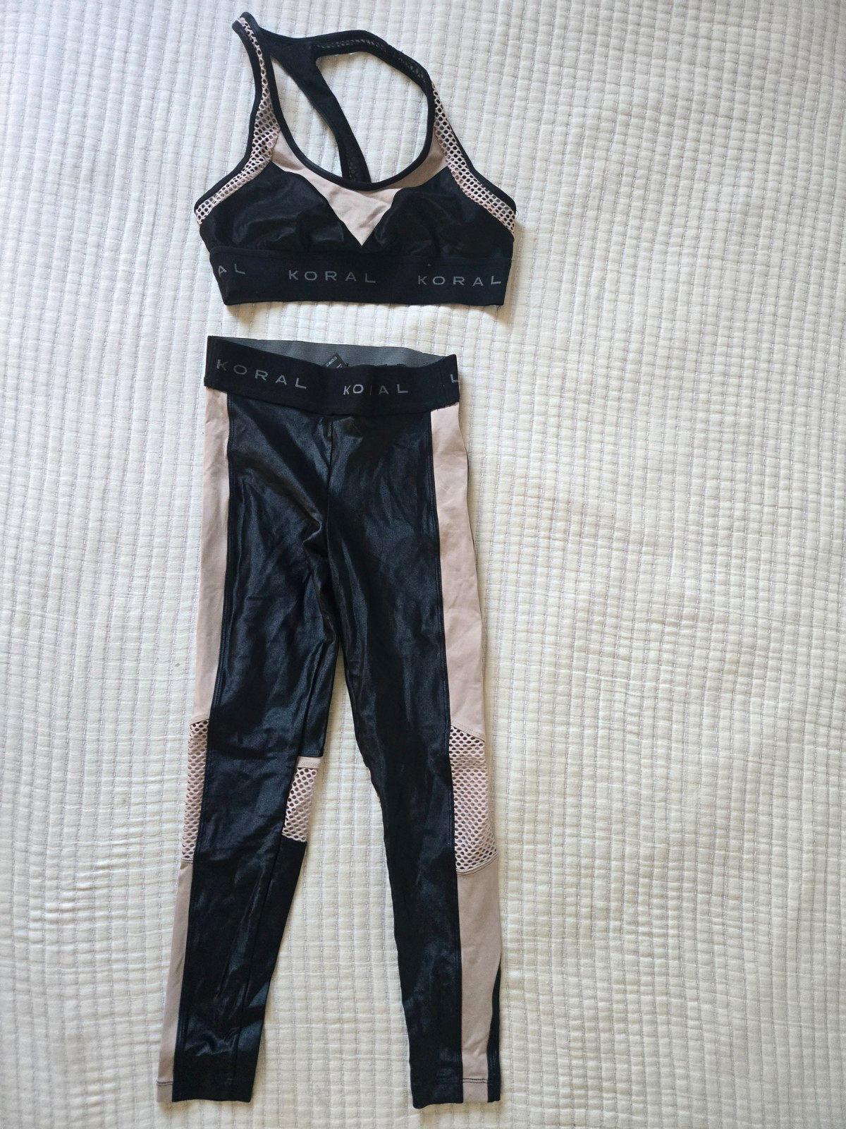 как выглядит Koral Activewear Matching Set Sports Bra Leggings Black Mesh Size XS/S фото