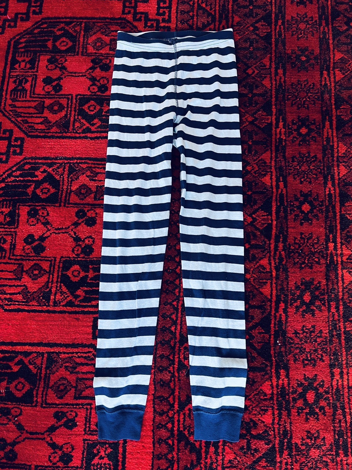 Hanna Andersson Size 140 10 Polar Express Pajama Pants Blue Stripe Organic Peru