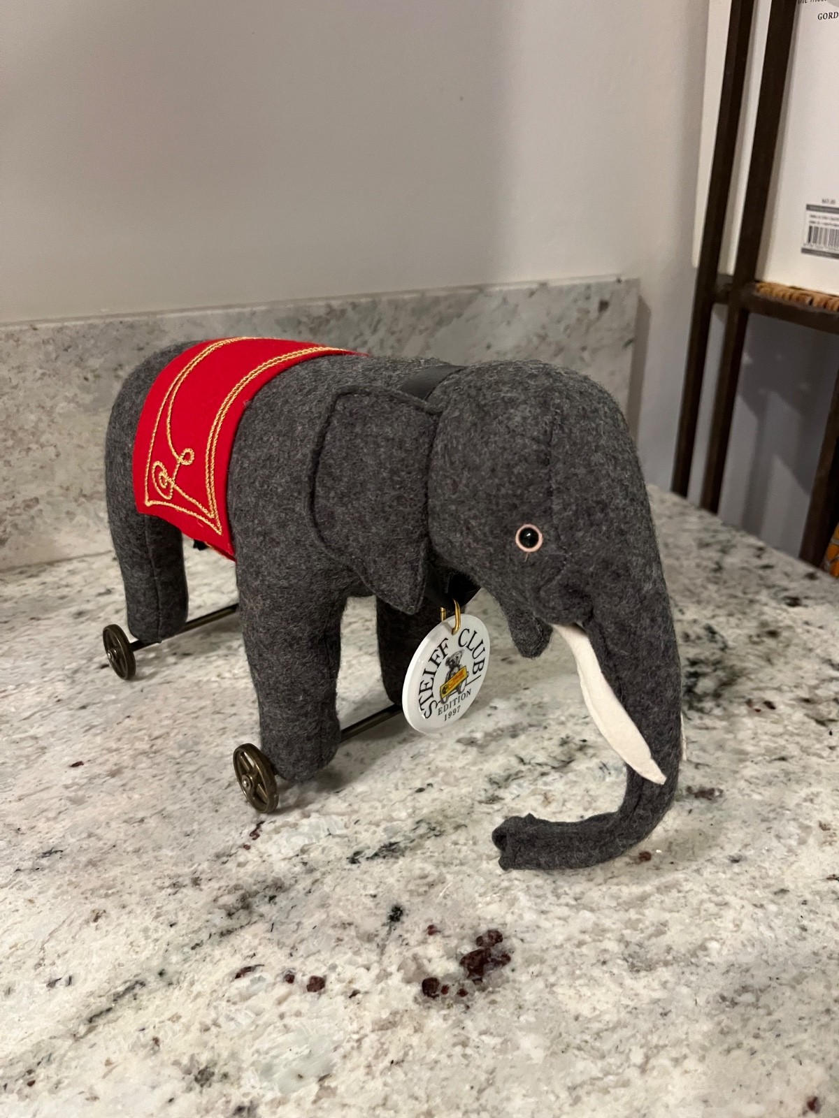 как выглядит Steiff FELT ELEPHANT ON WHEELS 1914 GREY 22 STEIFF CLUB EDITION 1997 Box. фото