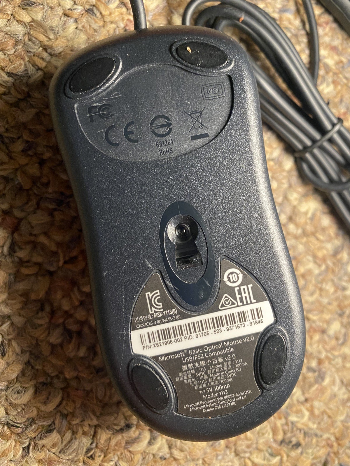 как выглядит Microsoft Basic Optical Mouse V 2.0 Model 1113 USB Wired Black - UNUSED фото
