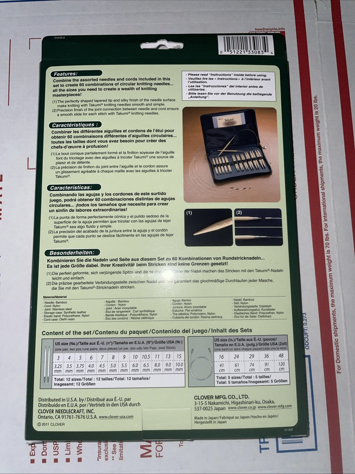 Clover Takumi Combo Interchangeable Circular Bamboo Knitting Needle Set 3683 New