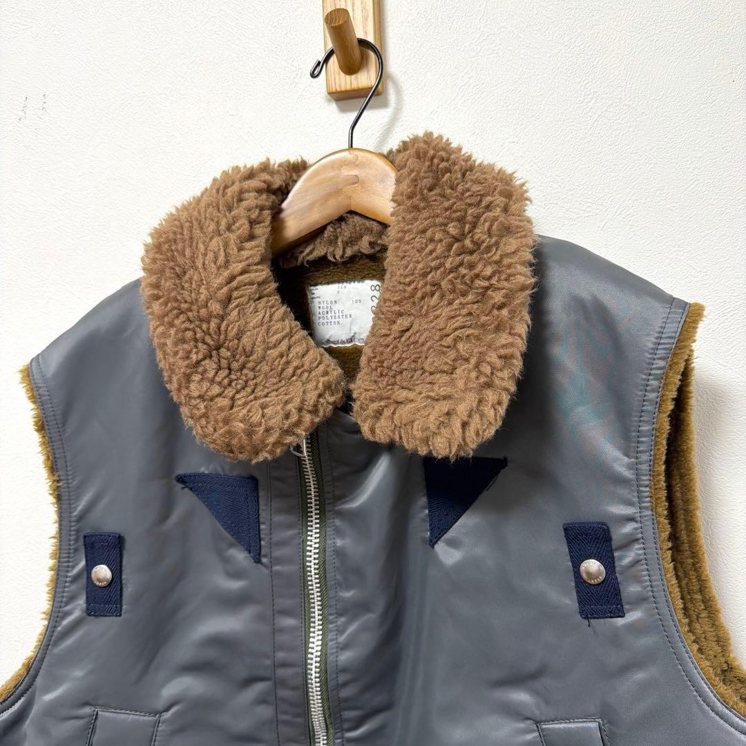 USED SACAI NYLON TWILL MIX VEST 2 22-02828M GOOD
