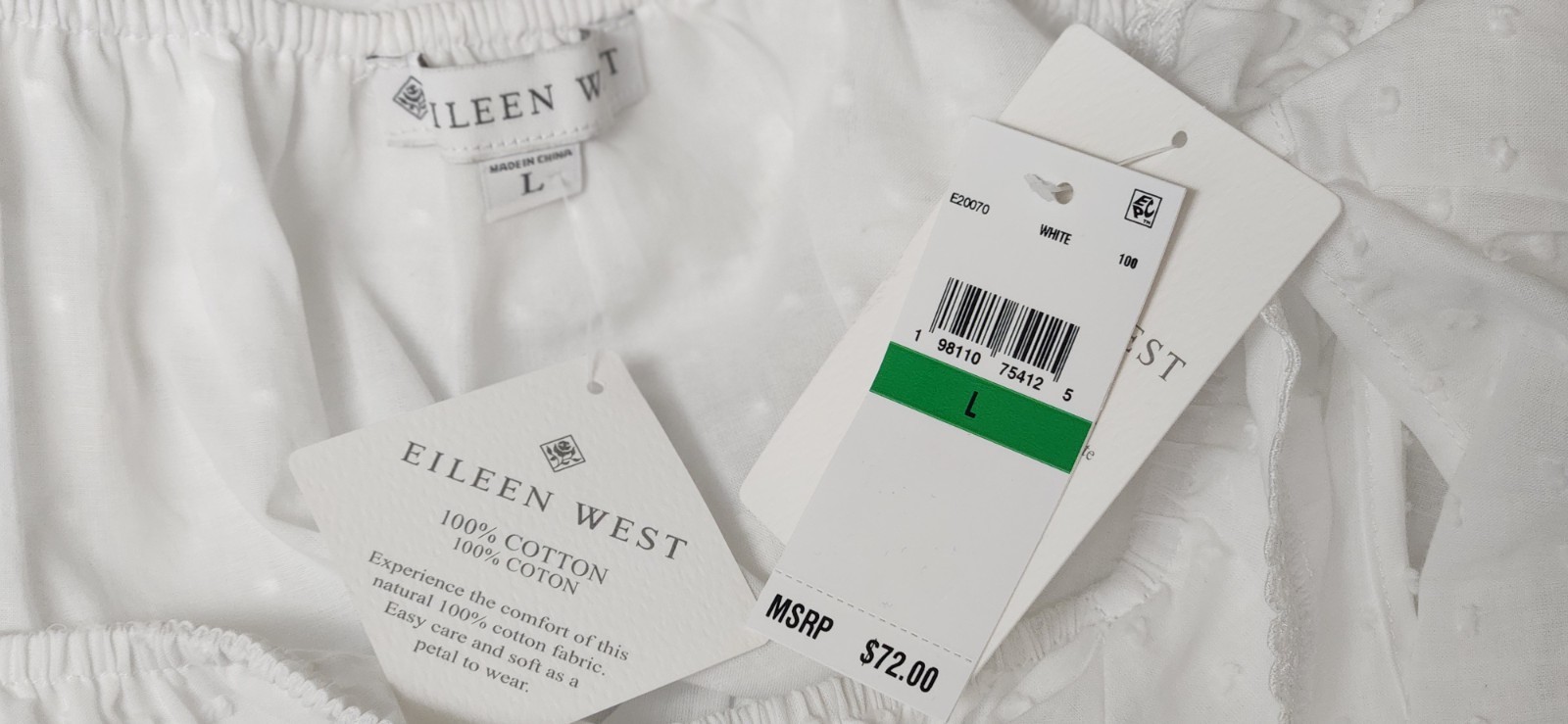 как выглядит Eileen West Sleeveless White Clip Dot Ruffle 100 Cotton Short Nightgown L фото