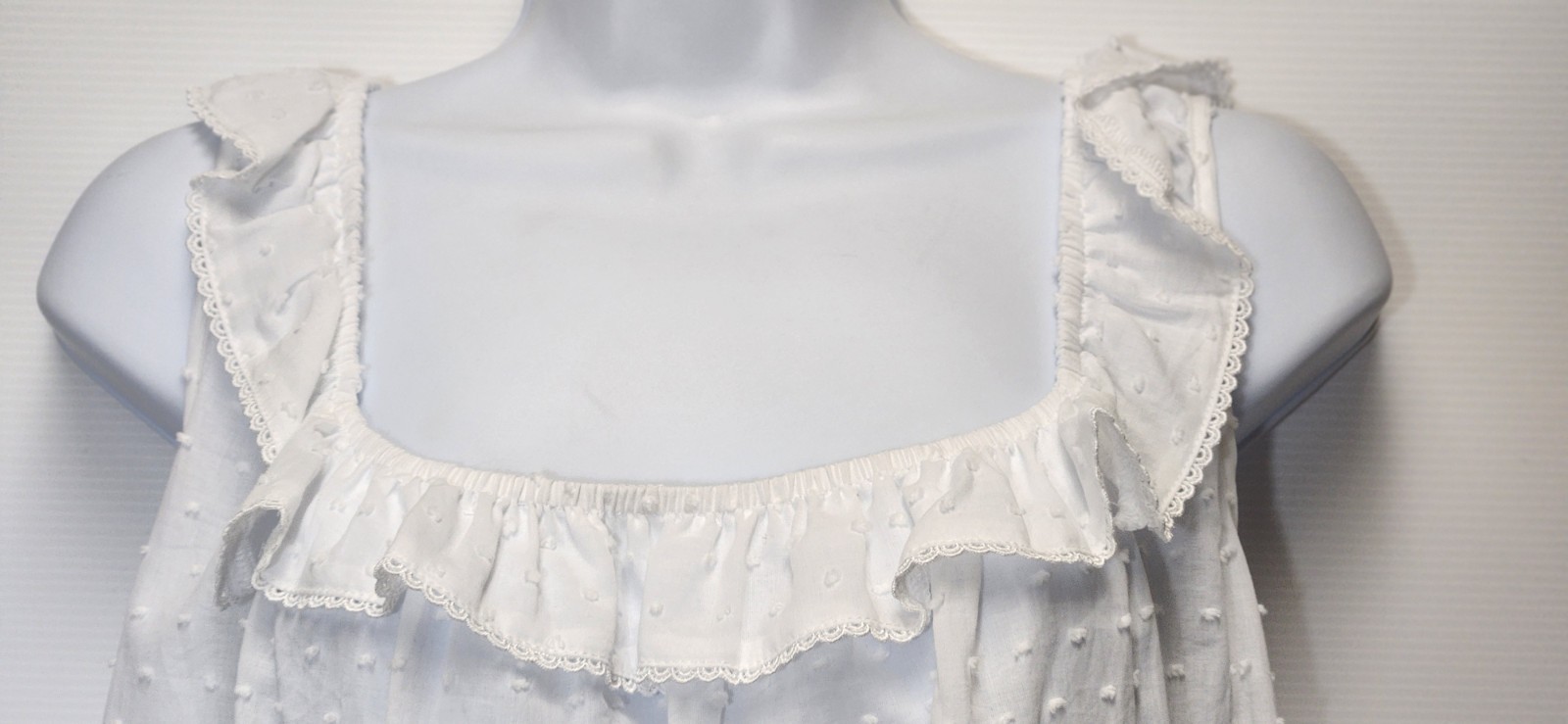 Eileen West Sleeveless White Clip Dot Ruffle 100 Cotton Short Nightgown L