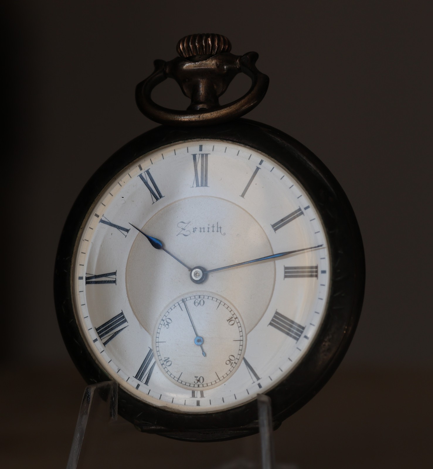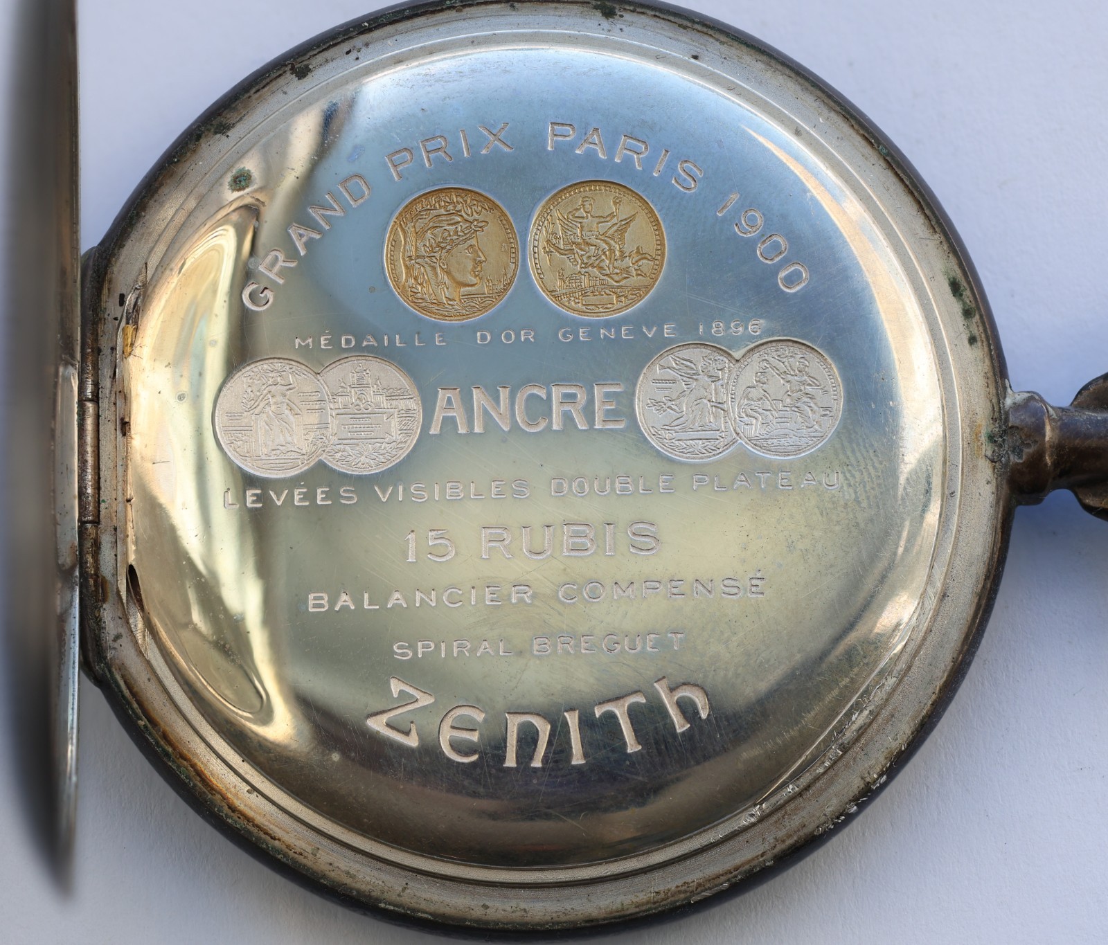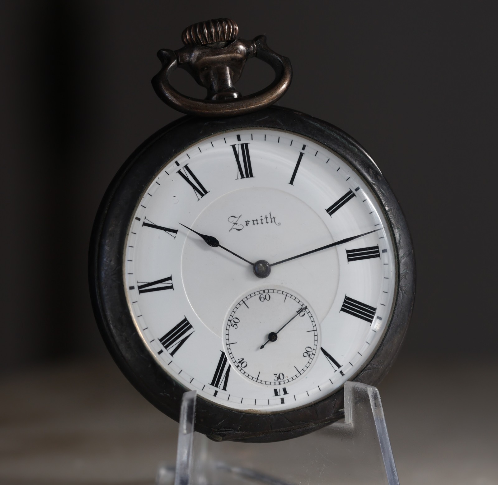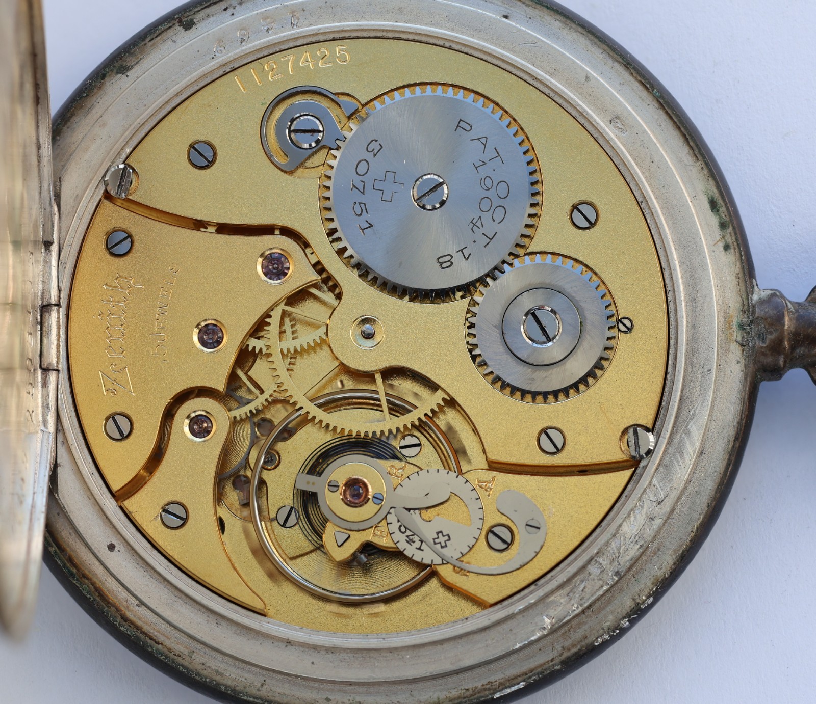 1900s ZENITH 52mm POCKET WATCH Open Face 15J Pat 30751 2-tone .800 Silver RUNS