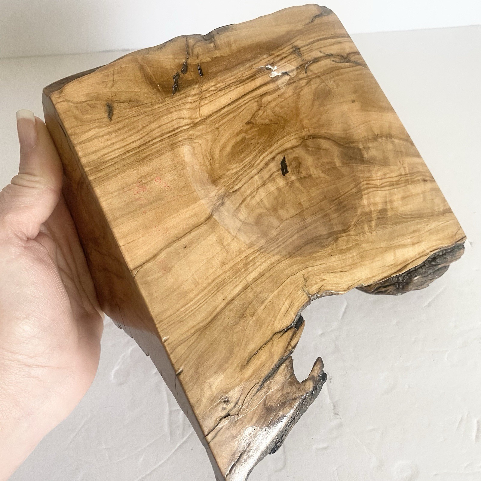 Hand Turned Wooden Bowl Artisan Handmade Live Edge Wood Plant Dish Rustic Art