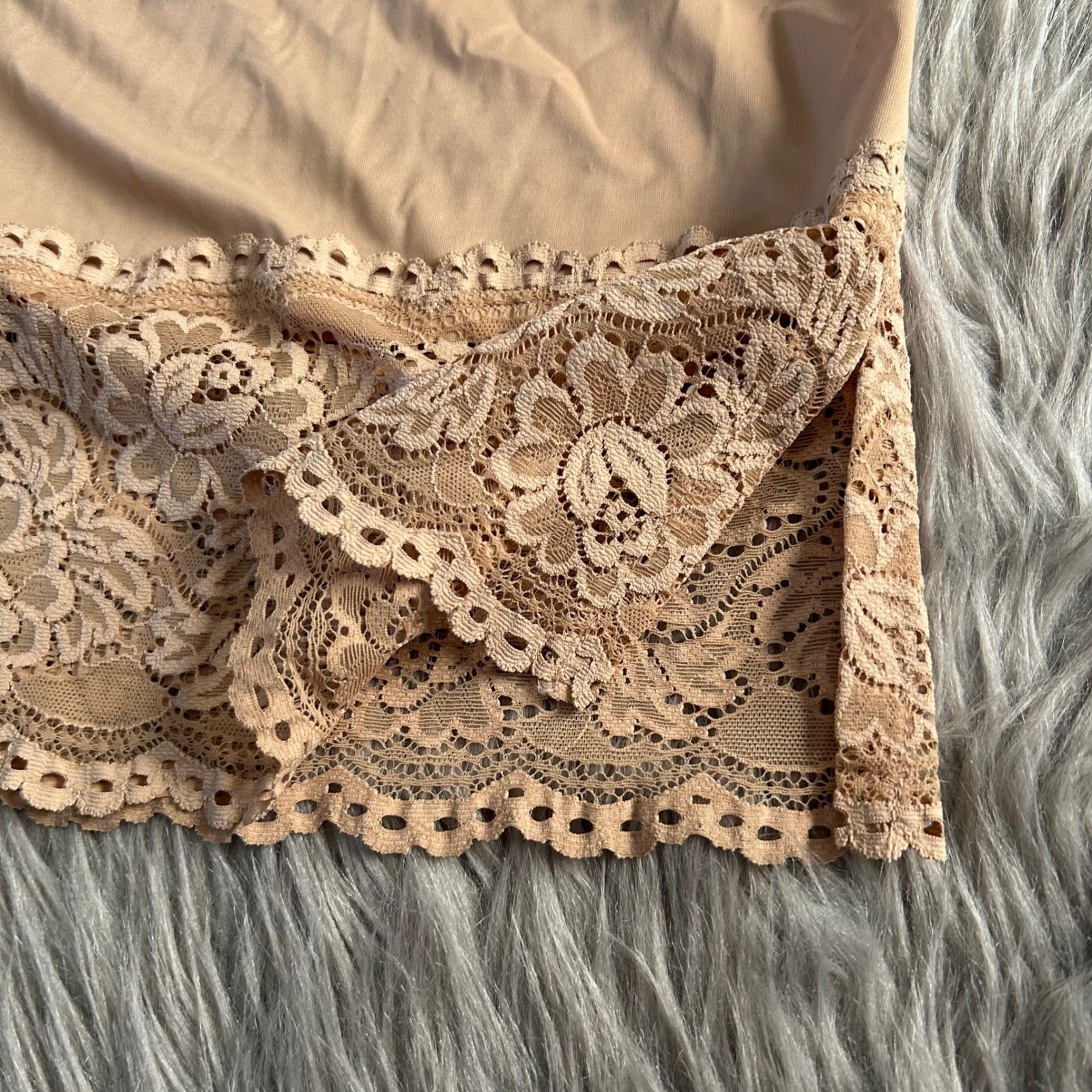 как выглядит Vanity Fair Radiant Collection Half Slip Womens Size Small 18" Beige Floral Lace фото