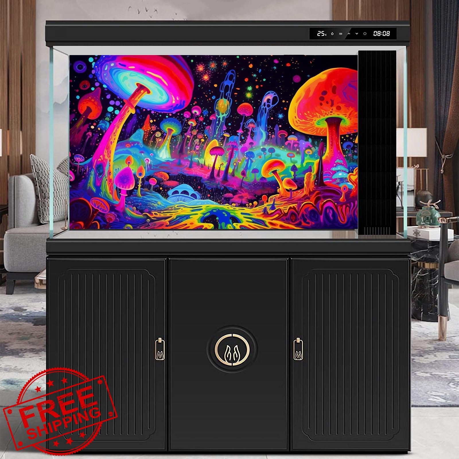 Fantasy Mushroom Aquarium Background 36x18in Fish Tank Decor Poster